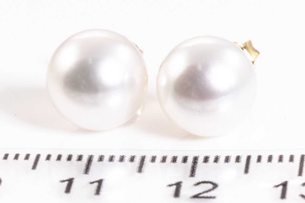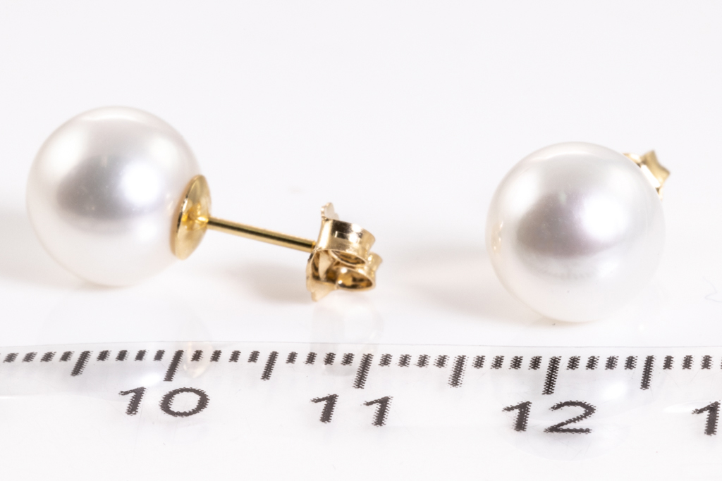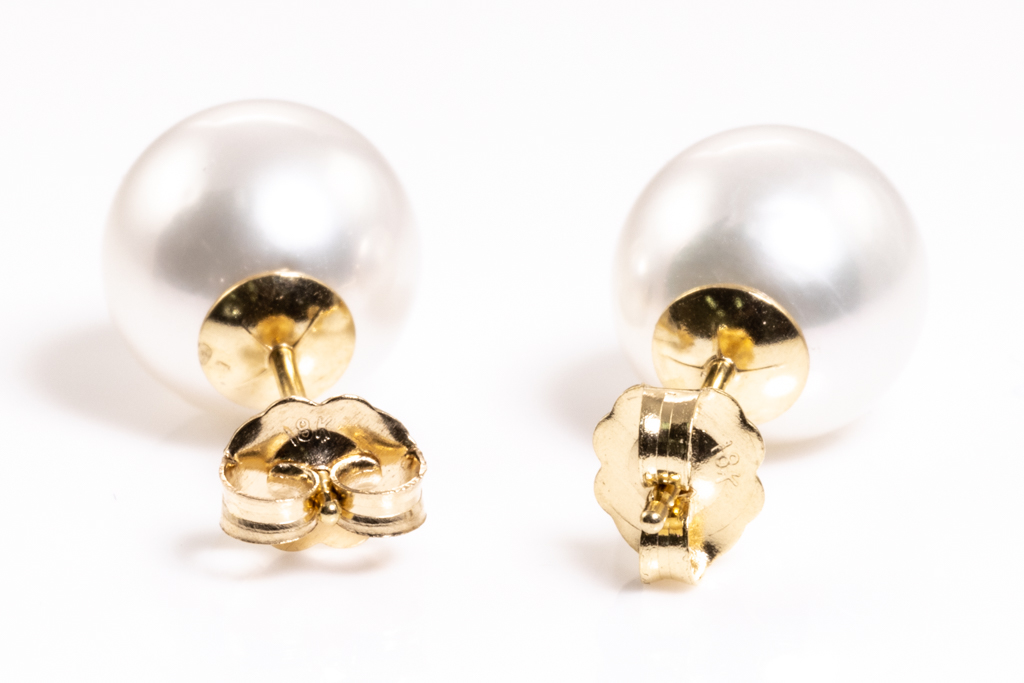 Pearl Studs with South Sea Pearls of 9.0mm. 18ct yellow gold. Weight 3.2g. (New)