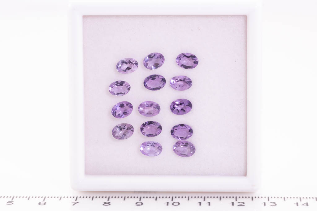 A loose parcel of 14 oval amethysts totalling 9.16cts. Measuring 7 x 5mm. (As New)