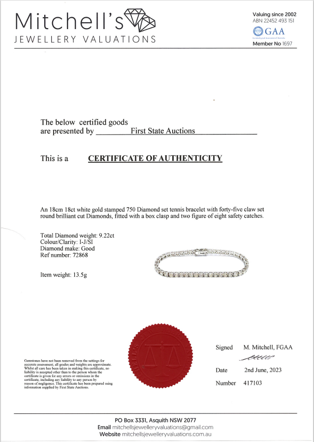 9.22ct Diamond Tennis Bracelet | First State Auctions