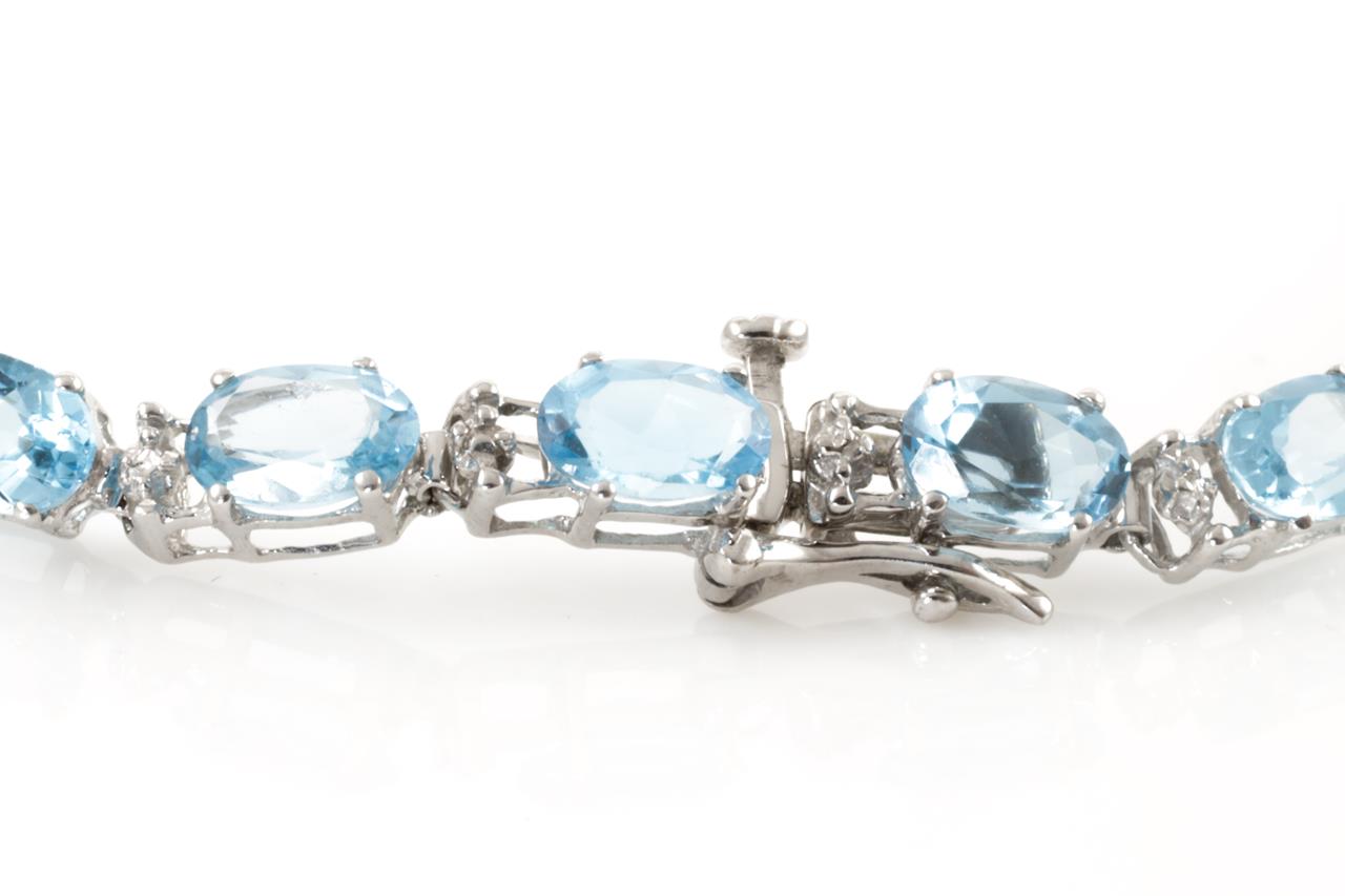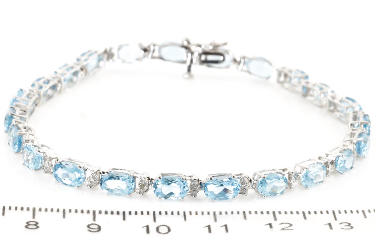 Diamond and Topaz Bracelet with twenty one oval Topaz totalling approximately 9.25cts and two round Diamonds totalling appoximately 0.02cts. 10ct white gold. Length 19.5cm. Weight 7.5g. (Pre-owned)