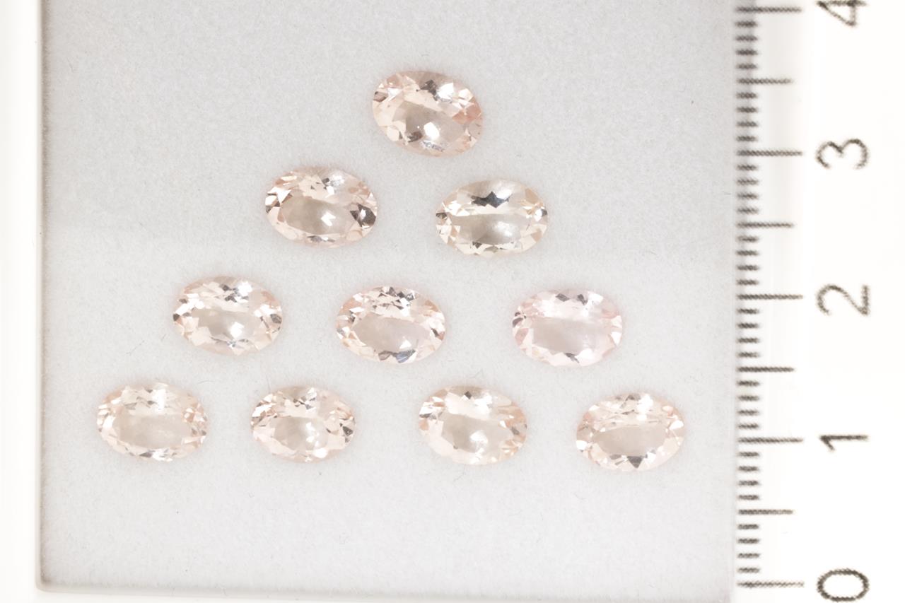 A loose parcel of 10 oval shape Morganites totalling 9.27cts. Approximate size: 8mm x 6mm. (As New)