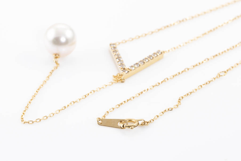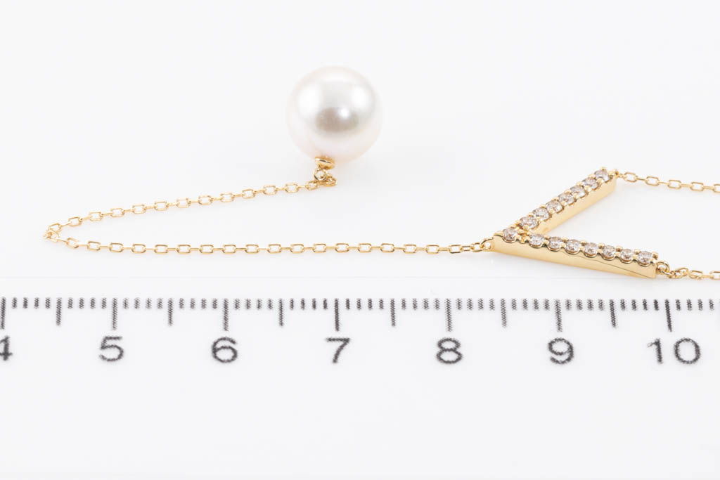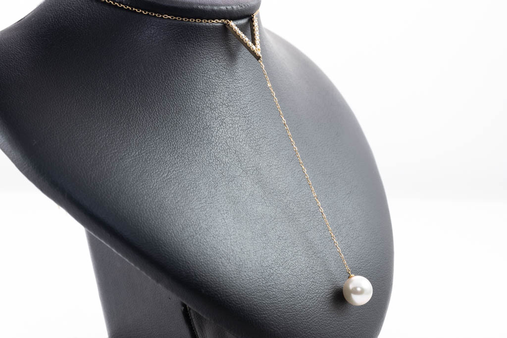Pearl and Diamond pendant with an Akoya Pearl of 9.2mm and Diamonds totalling 0.26cts. 18ct yellow gold with 18ct yellow gold adjustable 44cm chain. Weight: 3.8g. (Pre-owned)