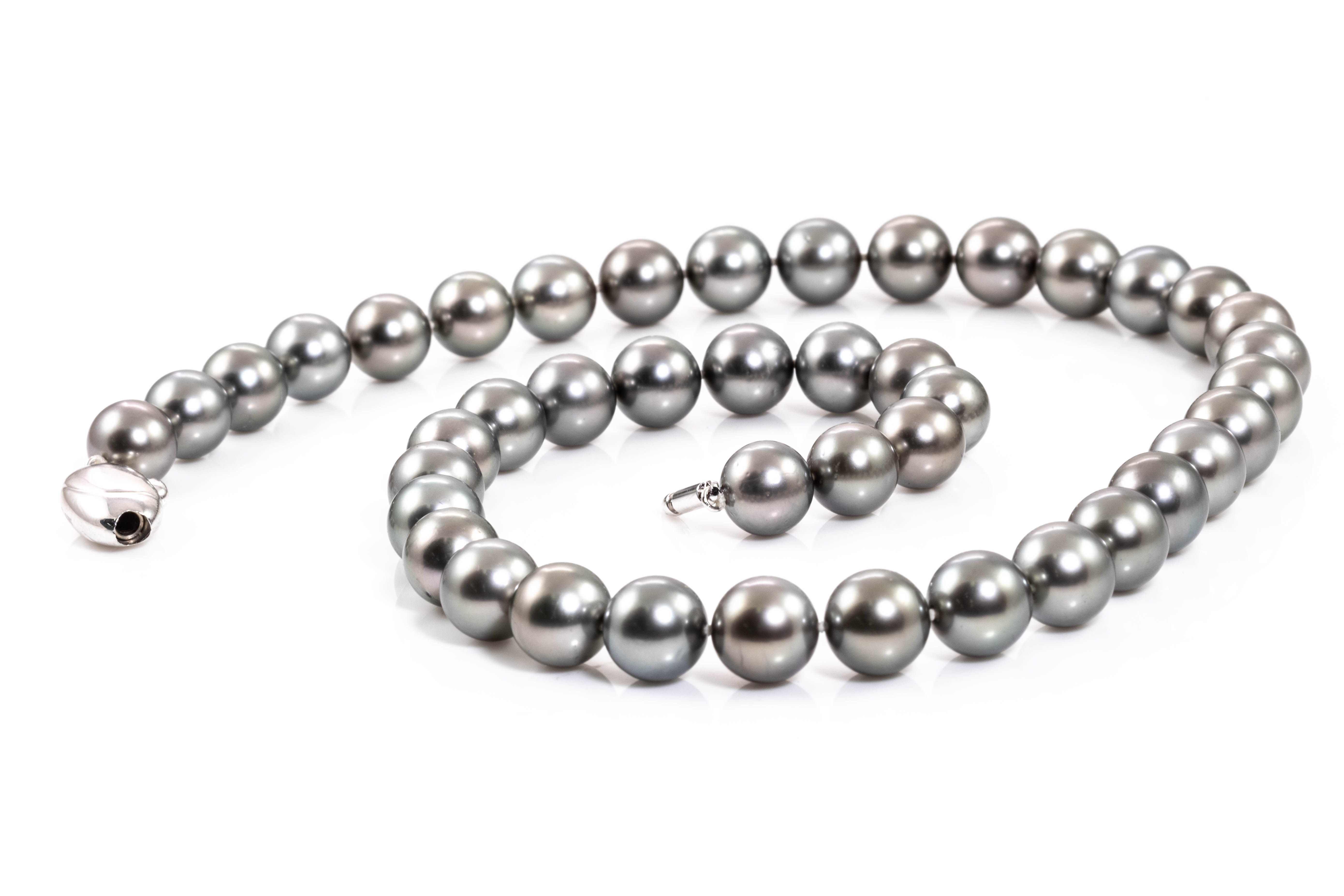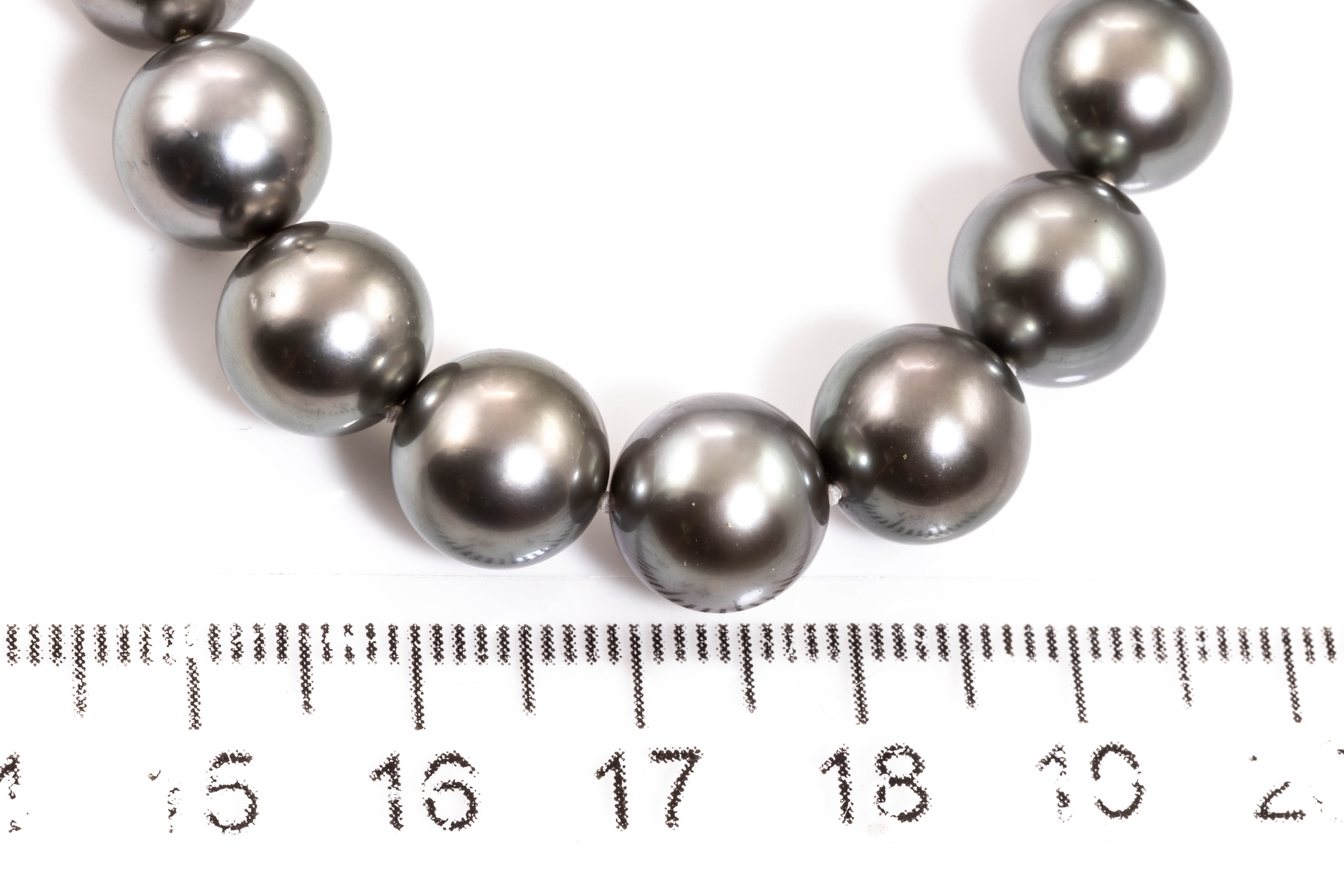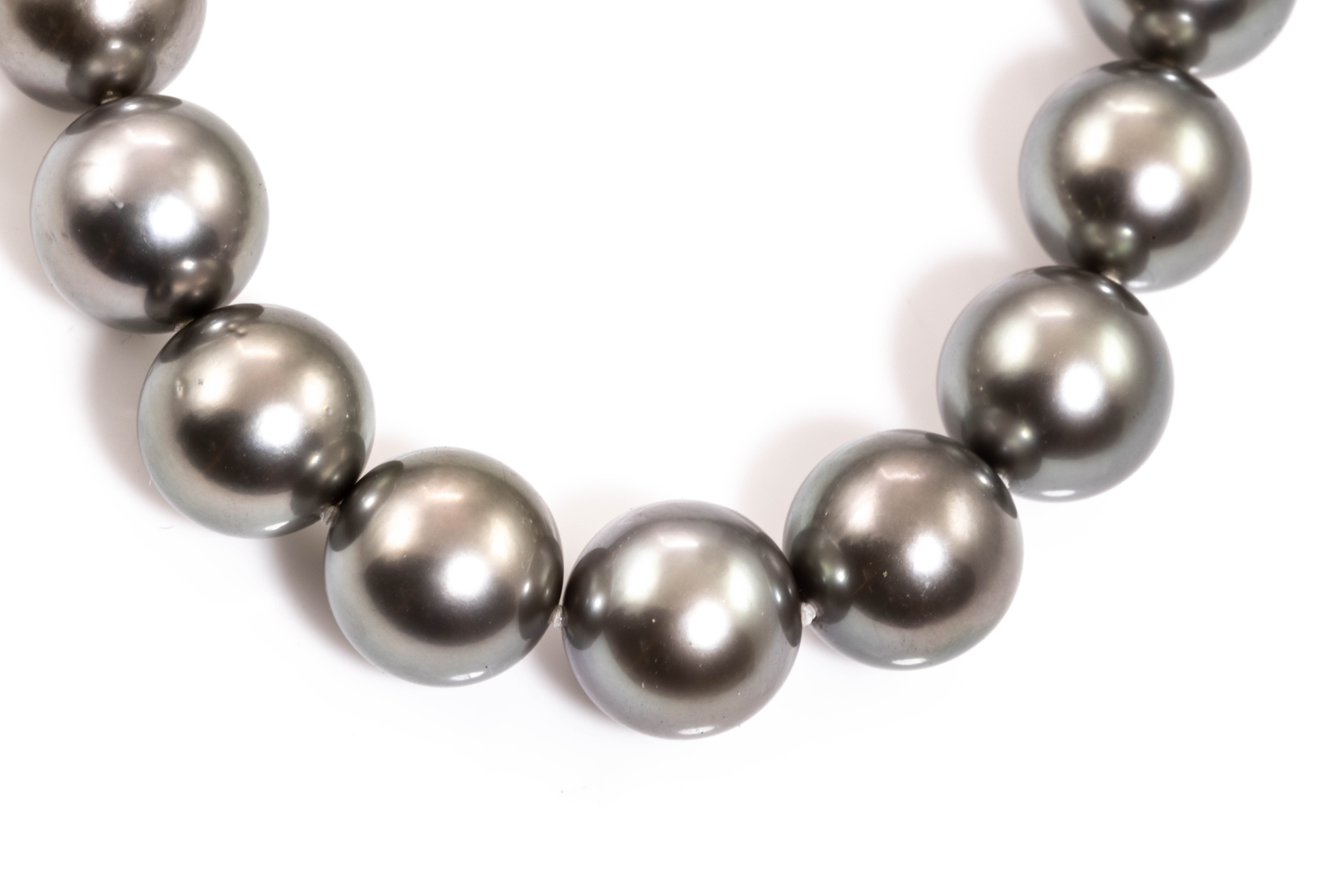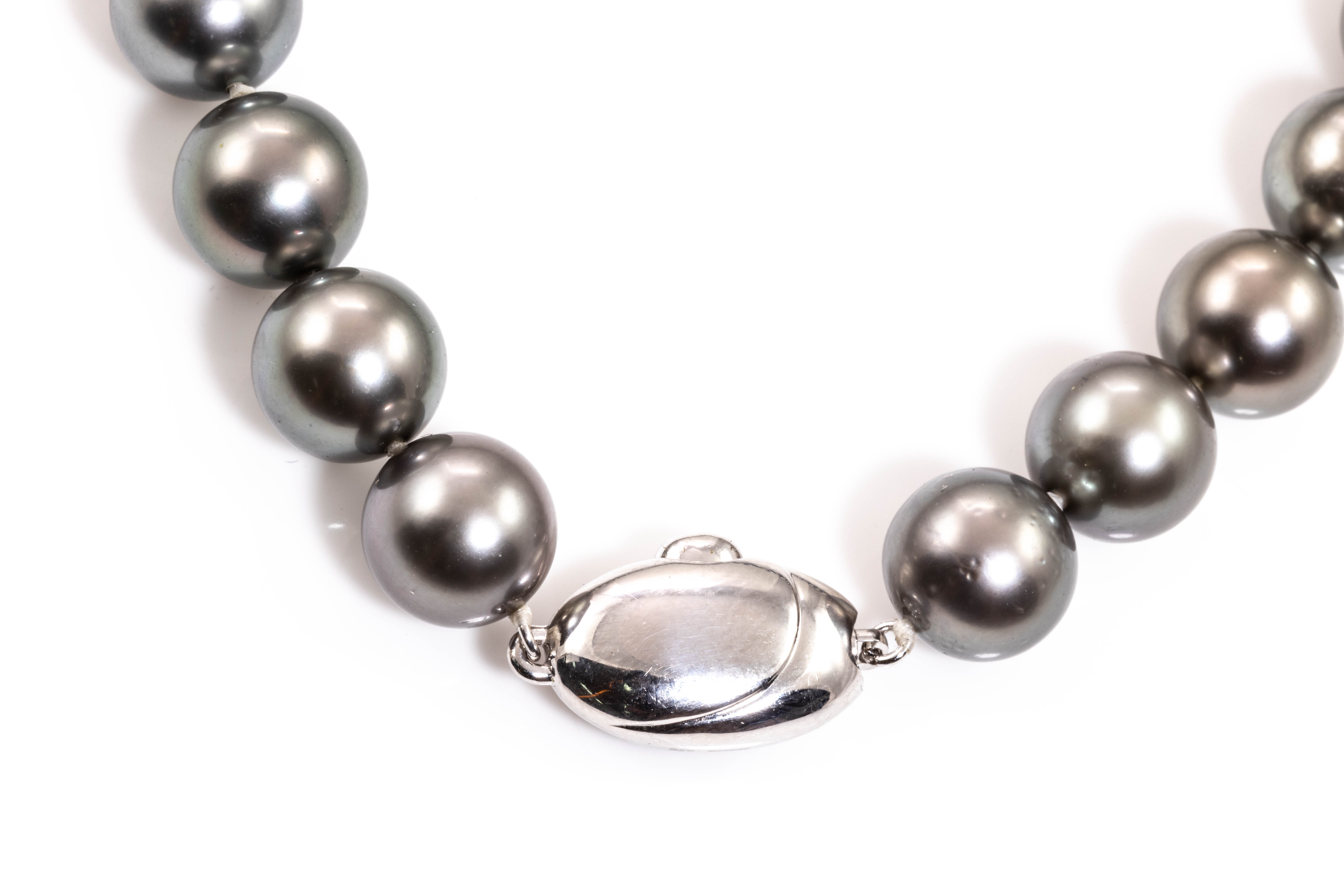 Pearl necklace with Tahitian Pearls of 9.2mm-9.9mm. 18ct white gold. Length: 45cm. Weight: 58.4g. (Pre-owned)