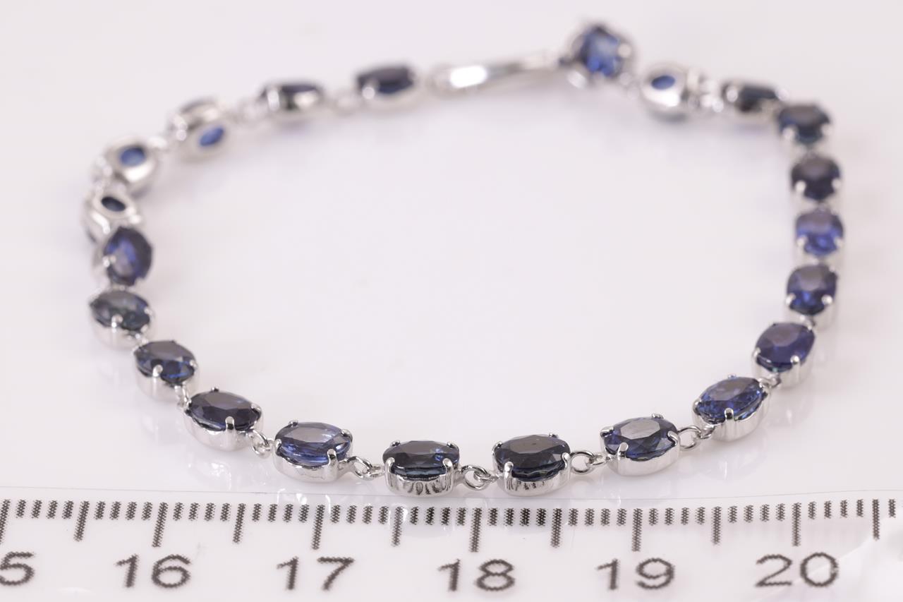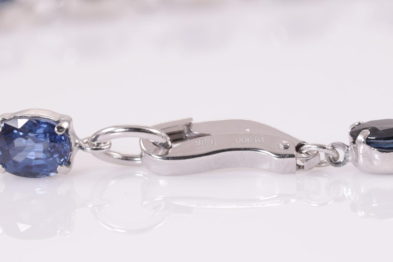 Sapphire Bracelet with oval shape royal blue Sapphires totalling 9.36cts. Platinum. Length: 17.5cm. Weight: 5.2g. (Pre-owned)