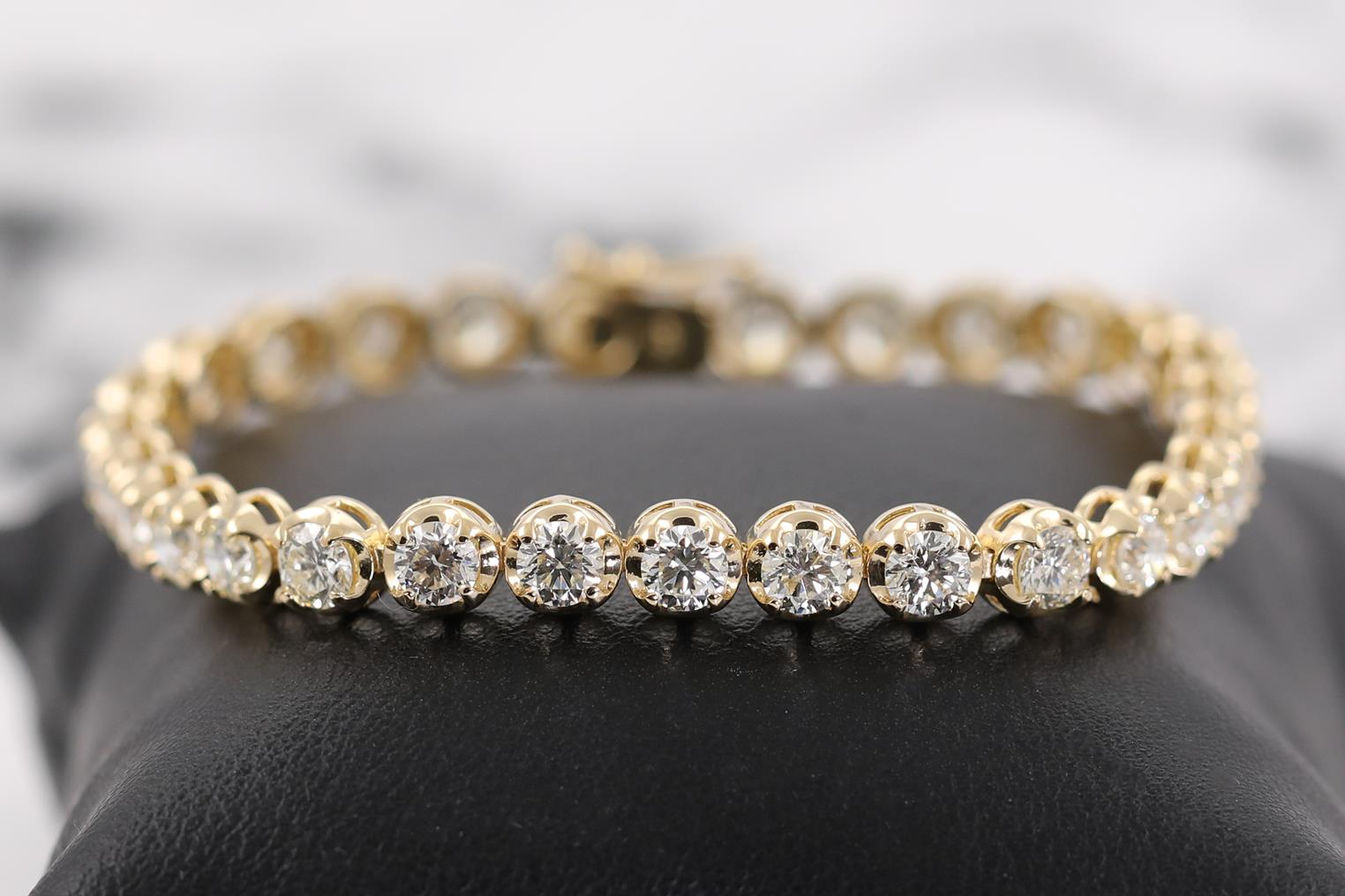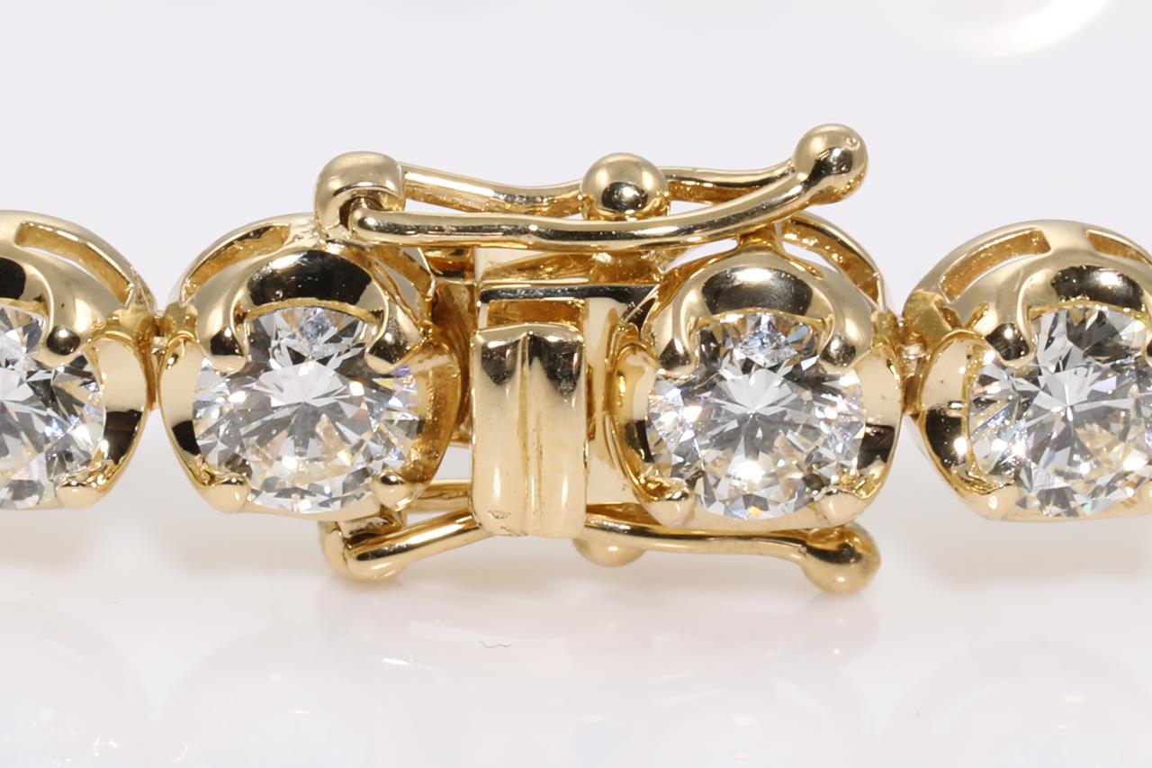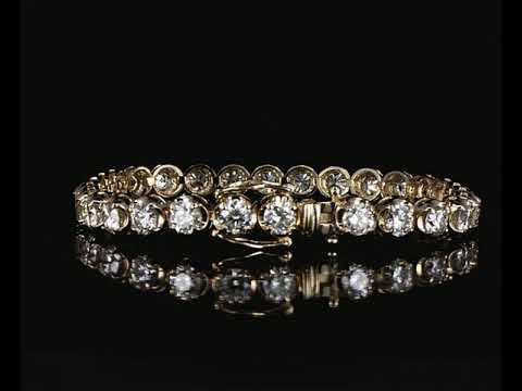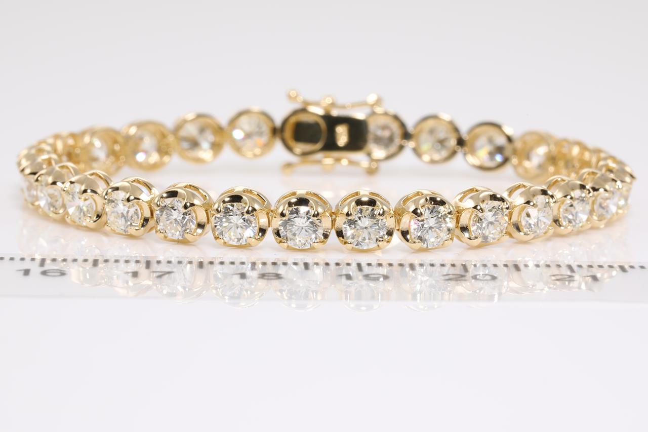 Diamond tennis bracelet with 29 round Diamonds totalling 9.45cts (Estimated grading: K VS-SI). 18ct yellow gold. Length: 18cm. Weight: 16g. With certificate #414919. (New)