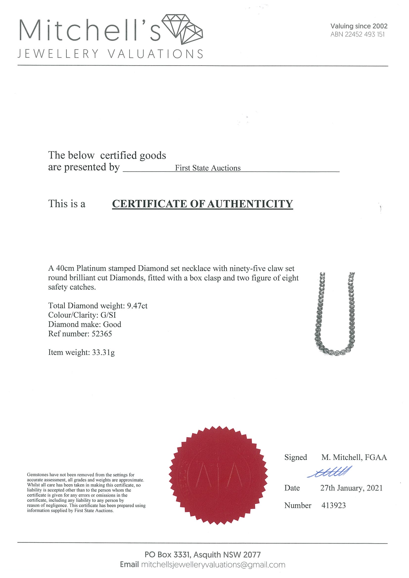 9.47ct Diamond Tennis Necklace | First State Auctions