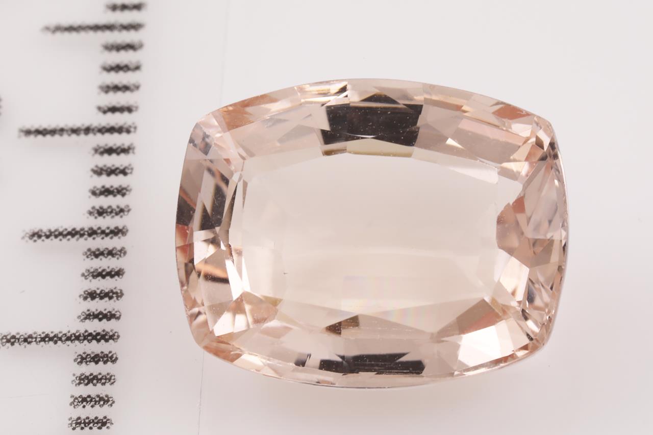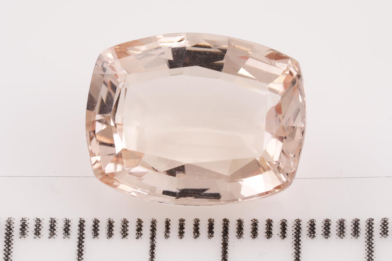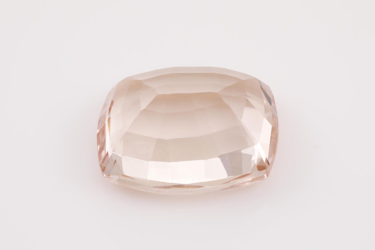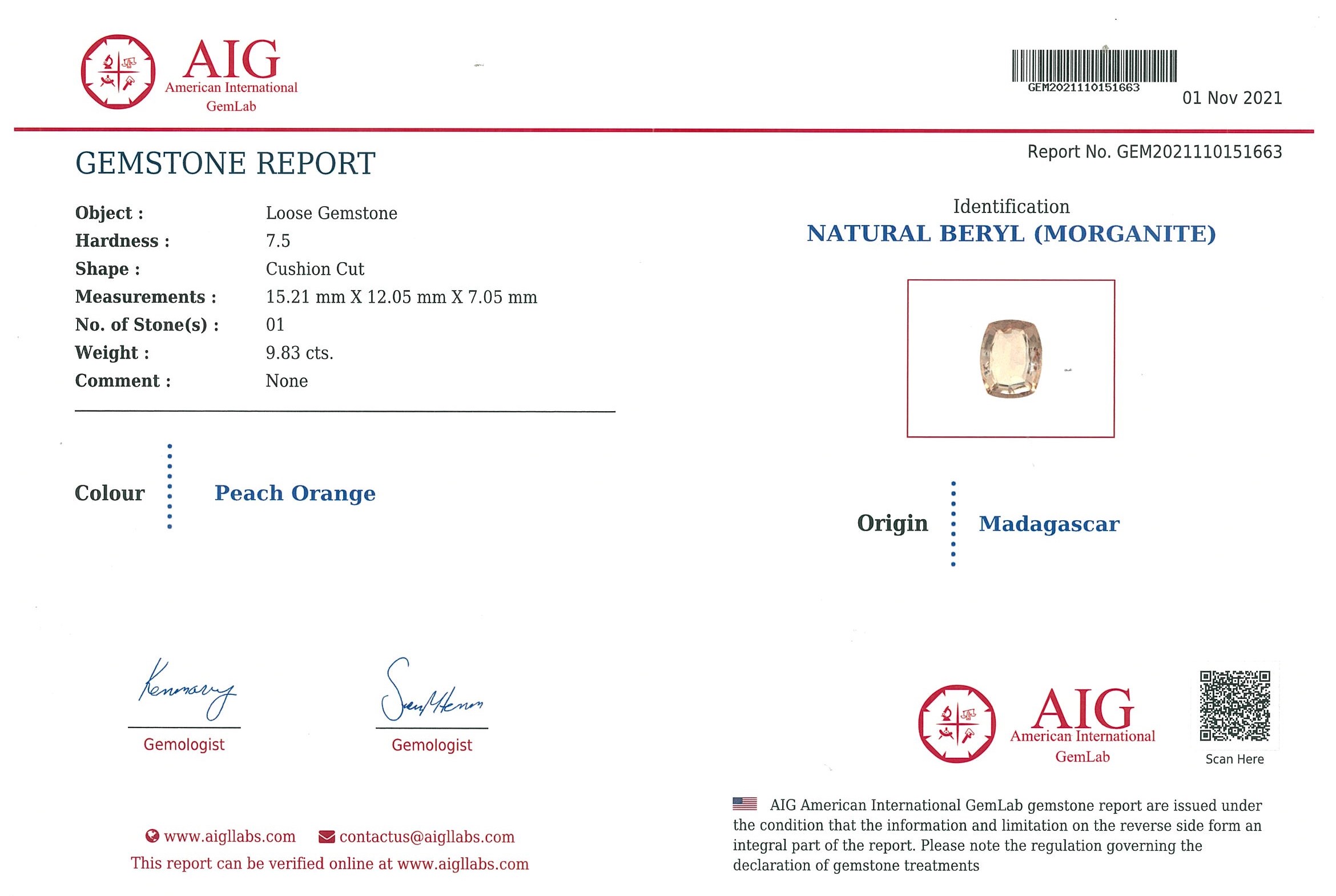 A loose cushion cut Morganite of 9.83ct. Dimensions: 15.21 x 12.05 x 7.05mm. With AIG report GEM2021110151663. (As New)
