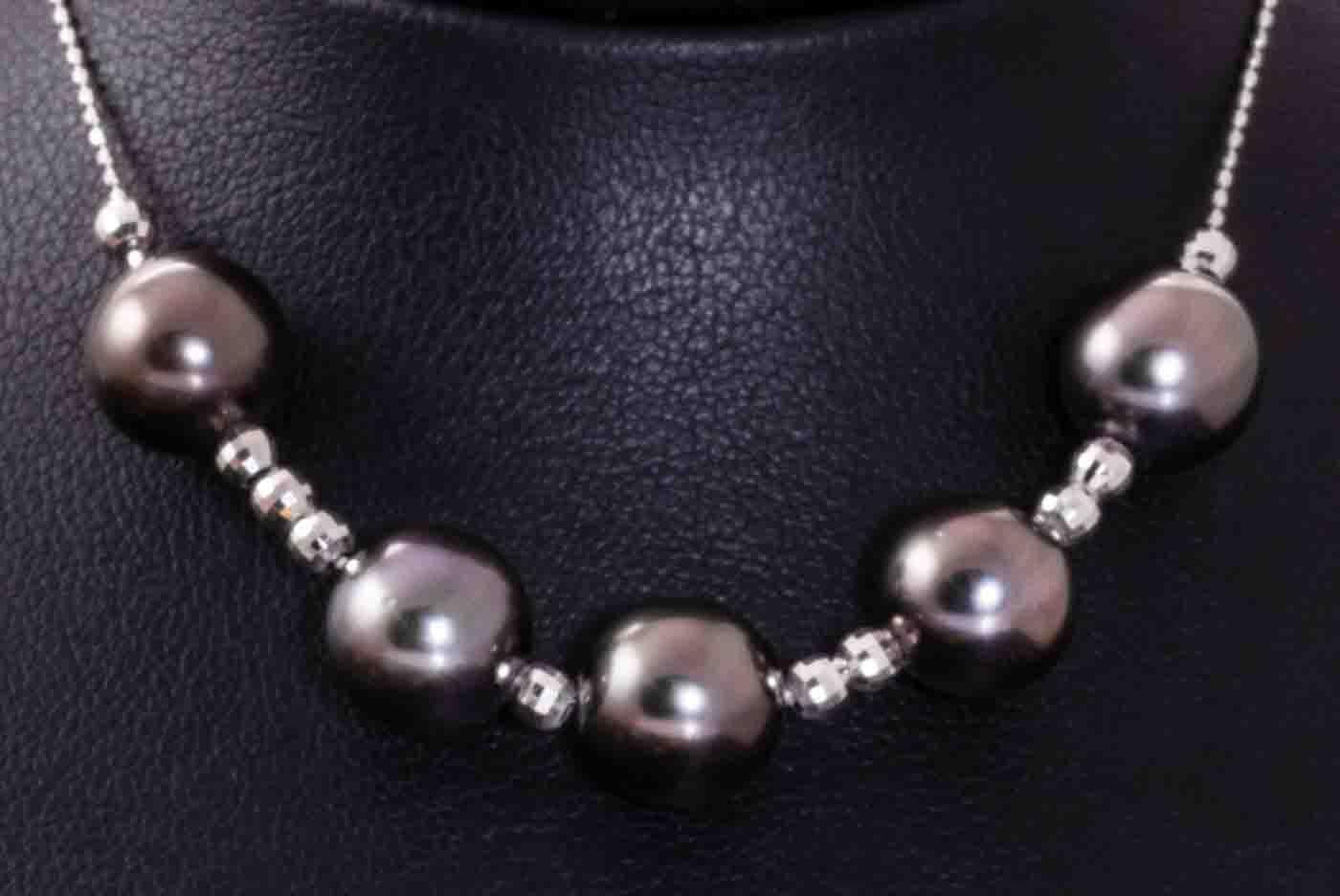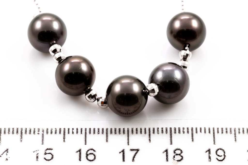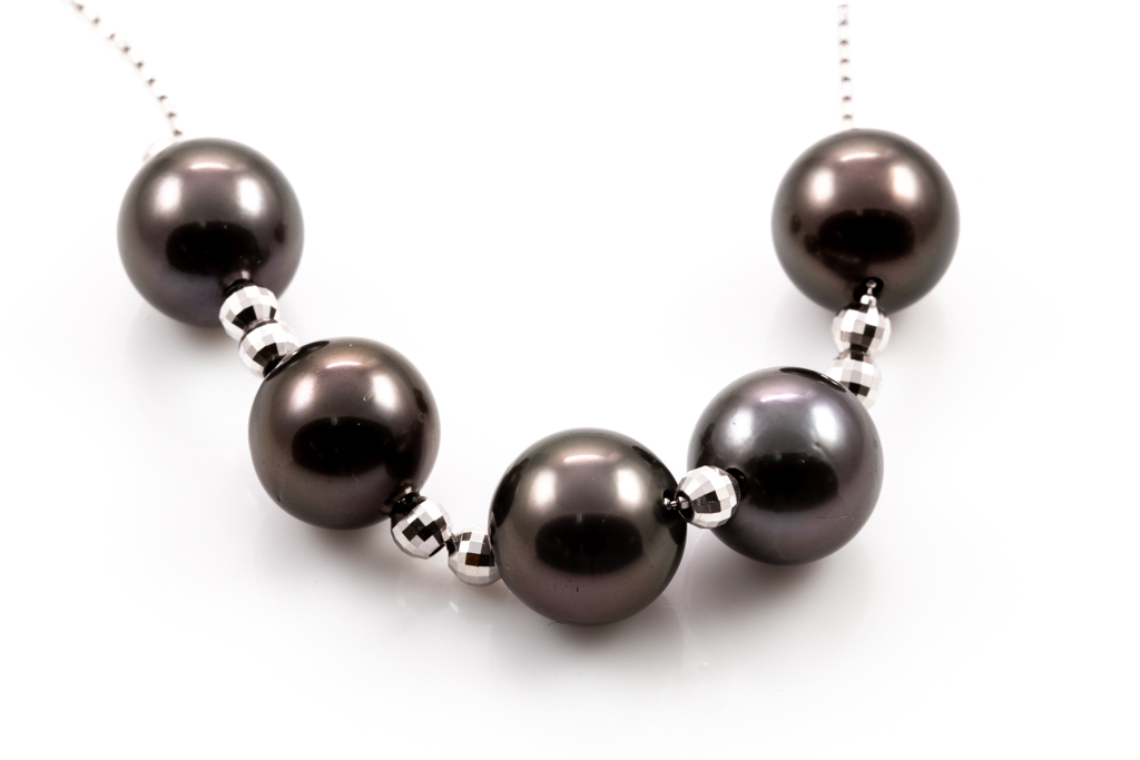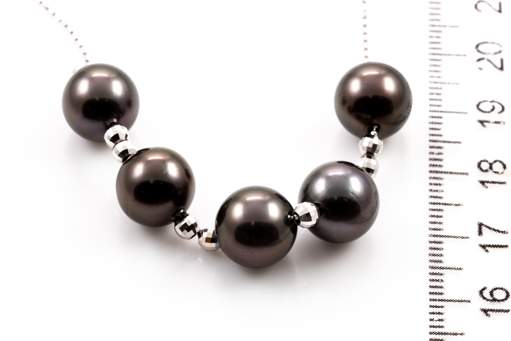 Pearl necklace with 5 Tahitian Pearls of 9.9mm. 18ct white gold adjustable chain. Length: 44cm. Weight: 8.8g. (Pre-owned)