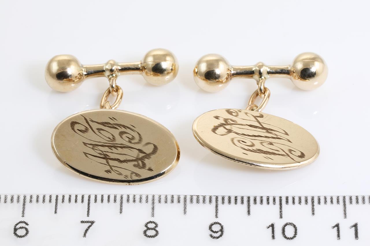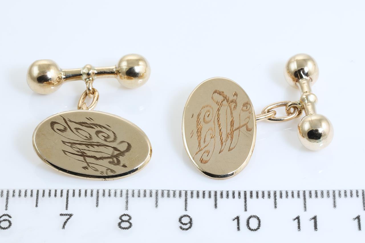 9ct yellow gold cufflinks marked MJ'. Weight: 6.7g. (Pre-owned)