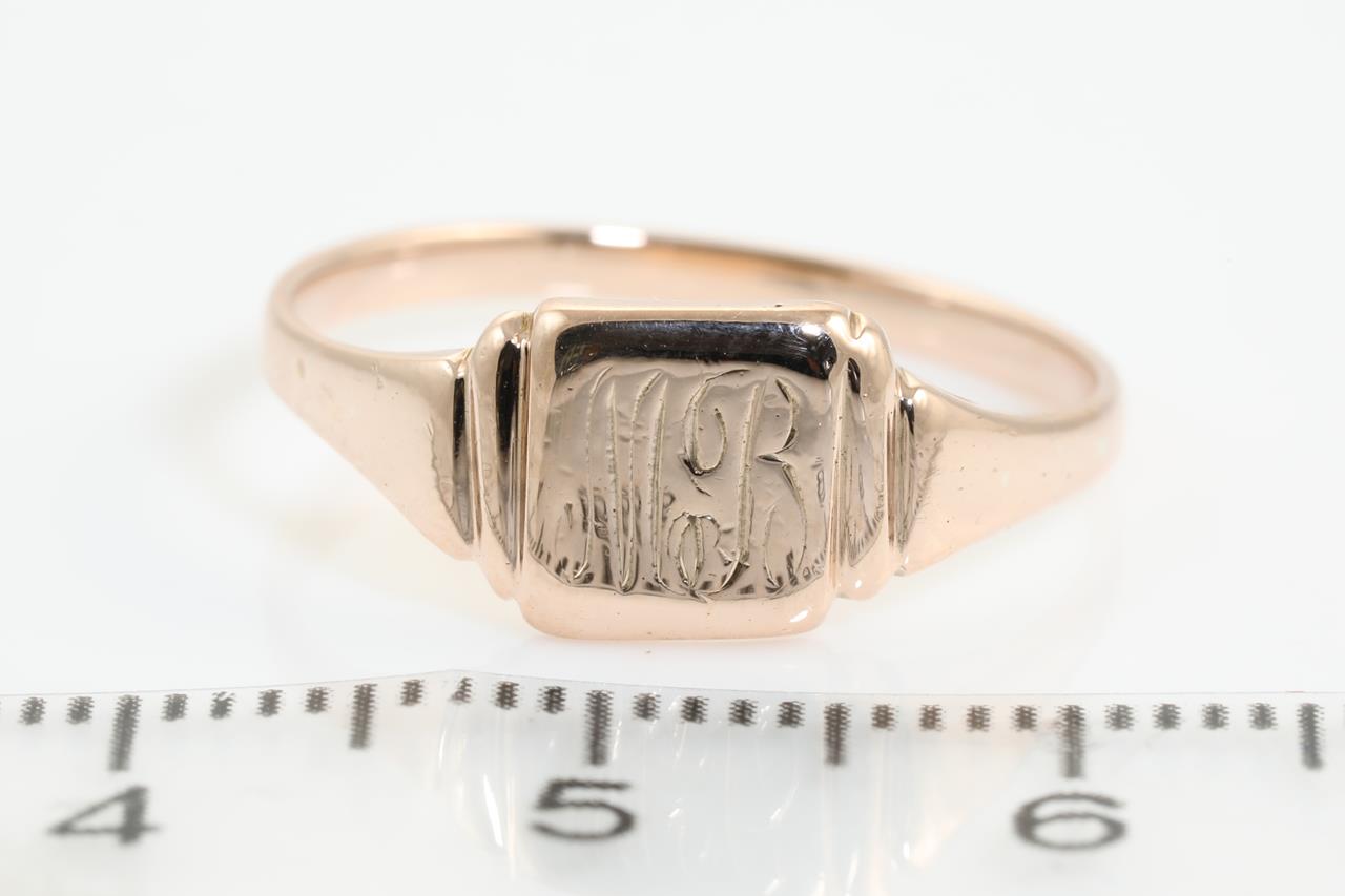 9ct rose gold signet ring marked MB. Ring size N. Weight: 1.8g. (Pre-owned)