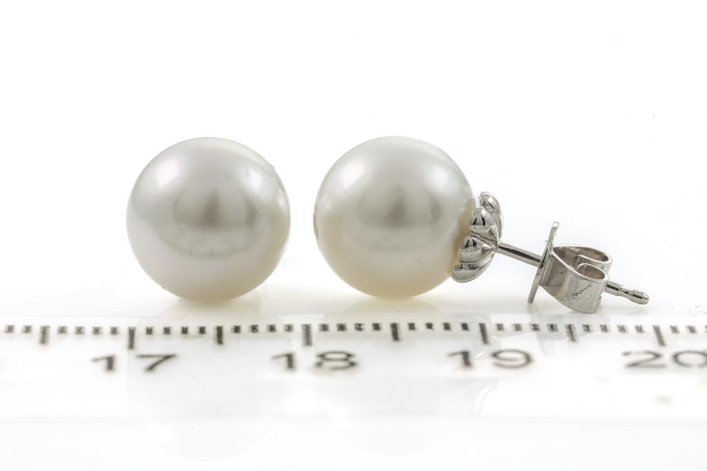 Pearl Studs with South Sea Pearls of 9.5mm. 18ct white gold. Weight 3.7g. (New)