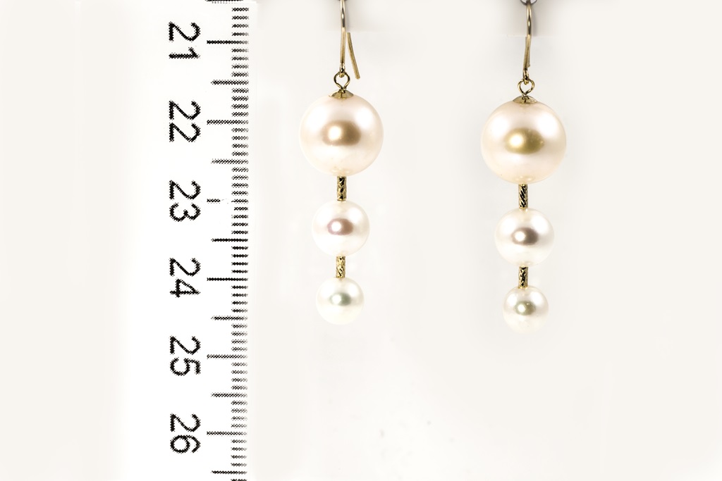 Drop earrings with Akoya Pearls of 7.5mm-5.5mm and South Sea Pearls of 11.0mm-10.0mm. 18ct yellow gold. Weight: 5.3g. (Pre-owned)