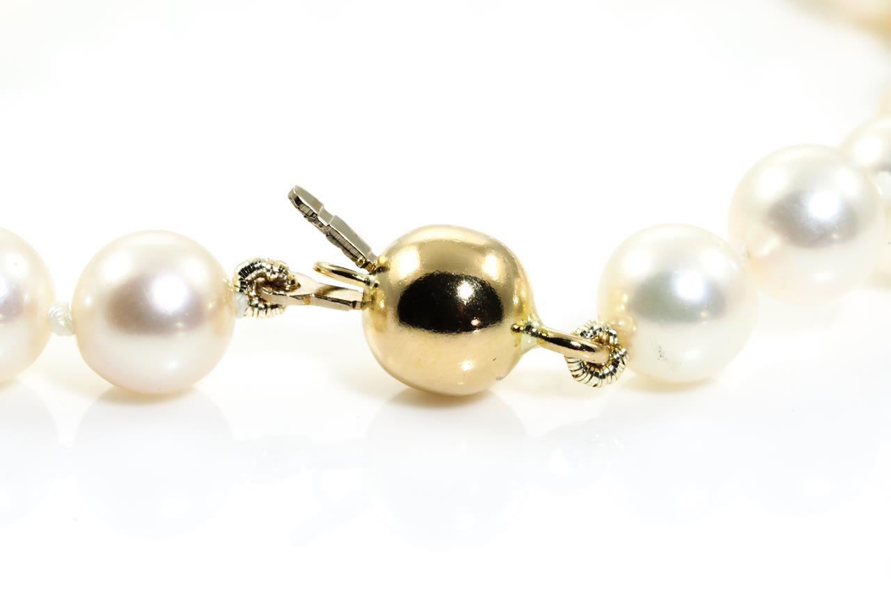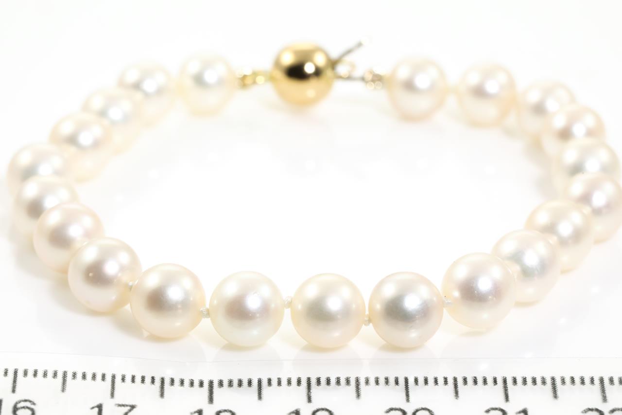 Pearl bracelet with 21 Akoya Pearls of 7.5mm-8.0mm. 18ct yellow gold clasp. Length: 19cm. Weight: 15.1g. (Pre-owned)