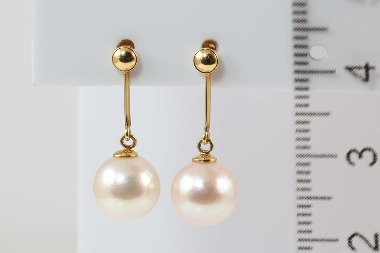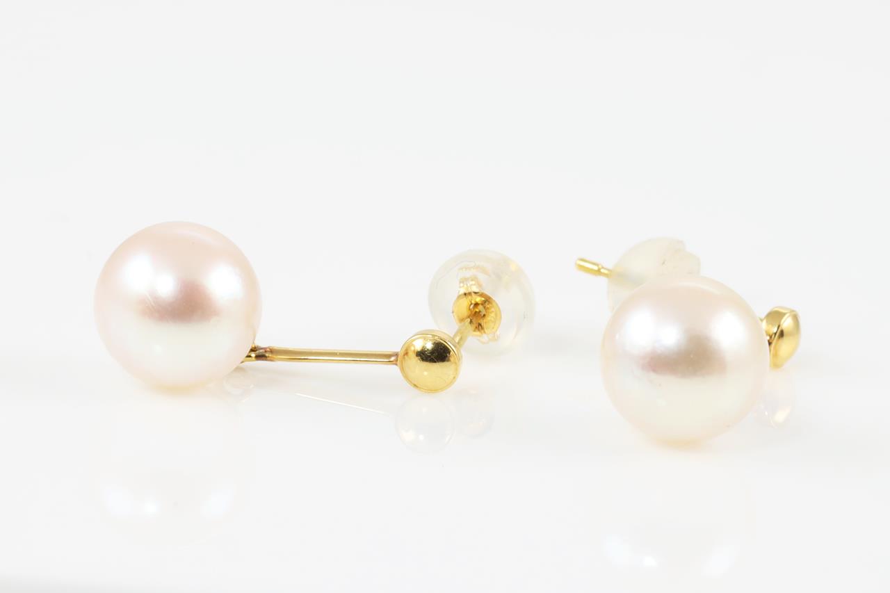 Pearl earrings with Akoya pearls of 8.1mm. 18ct yellow gold with gold & silicon backs. Weight 2.1g. (Pre-owned)