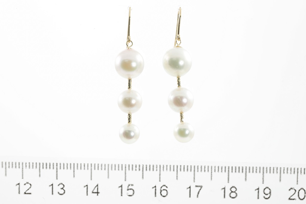 Pearl shepherds hook drop earrings with Akoya pearls of 5.5mm-8.5mm. 18ct yellow gold. Weight: 3.8g (Pre-owned)