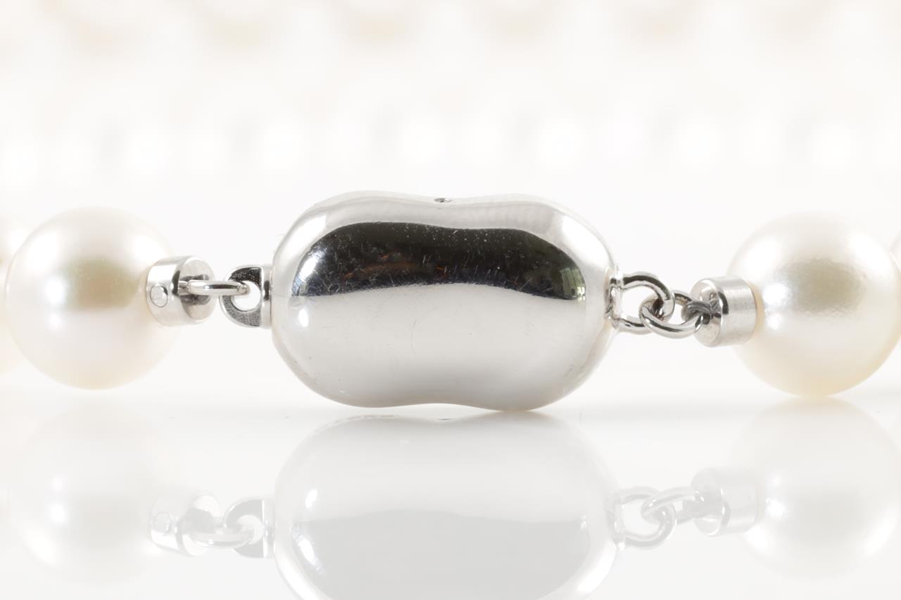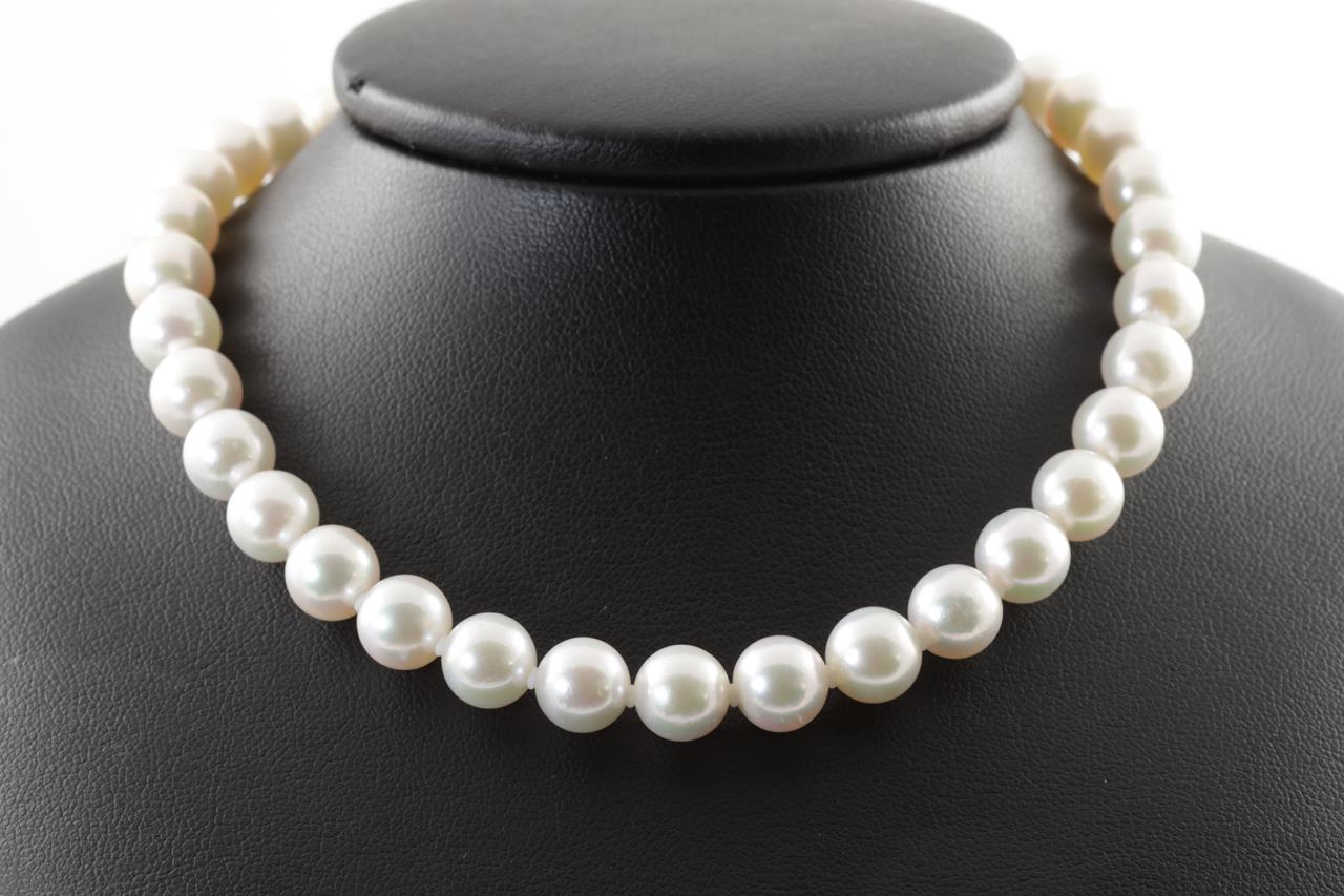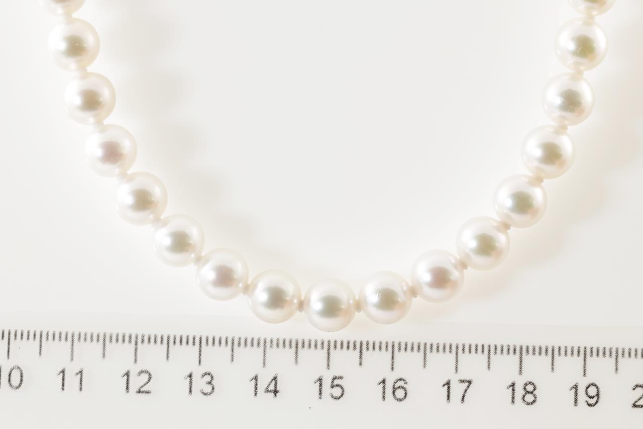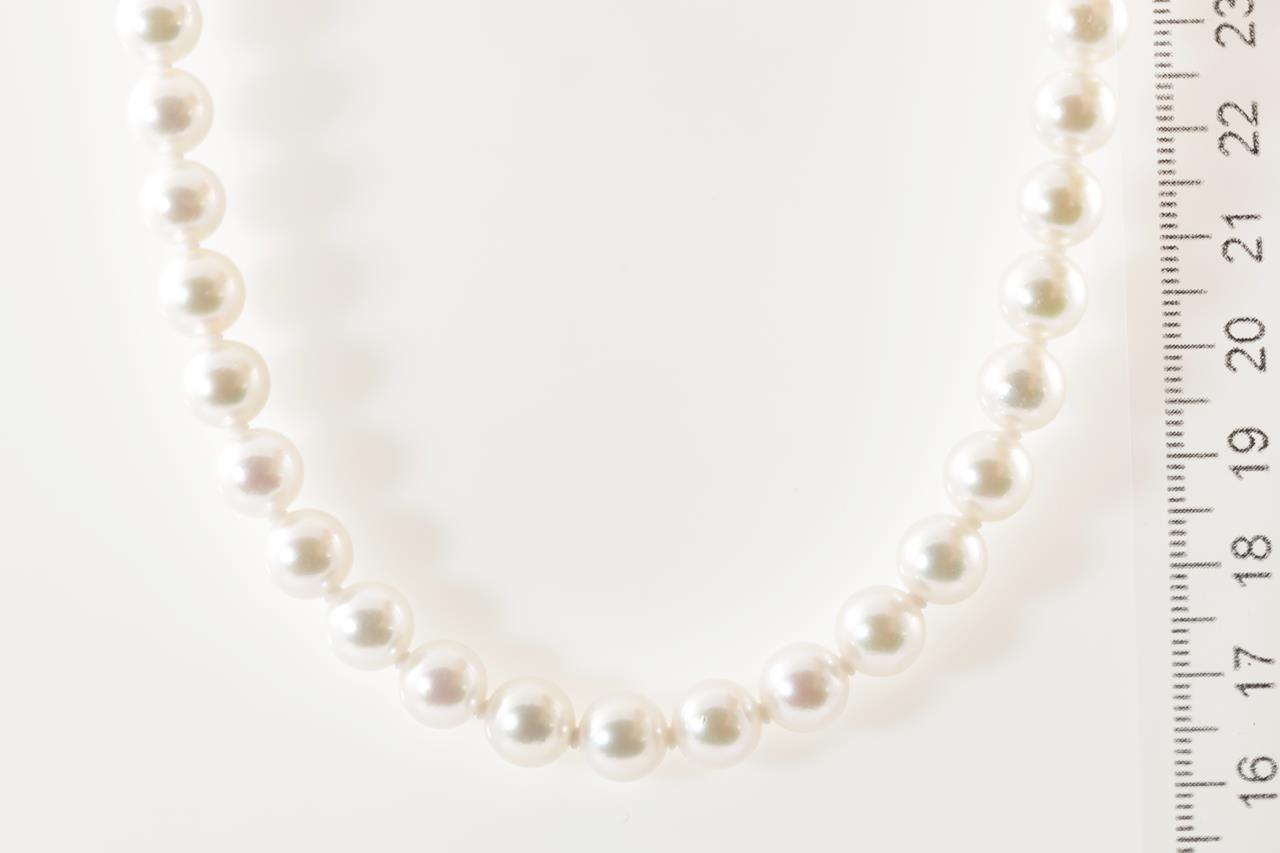 Akoya Pearl Necklace with 49 Akoya Pearls, 8mm and silver clasp. Length 44cm. Weight 42.2g. (Pre-owned)