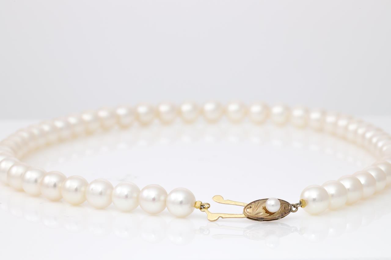 Akoya Pearl Necklace with Pearls of 8.0mm-8.5mm. 18ct yellow gold. Length: 41cm. Weight: 39.4g (Pre-owned)