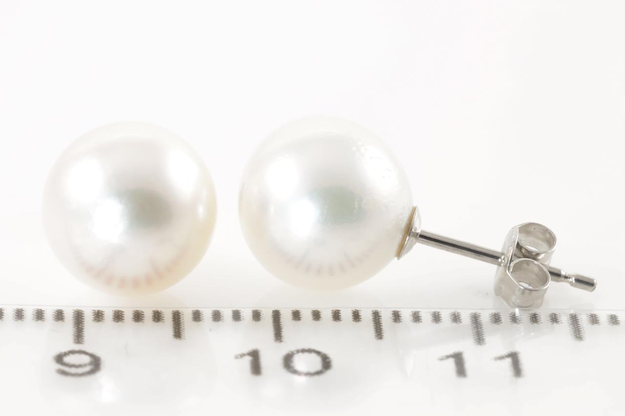 Pearl stud earrings with Akoya pearls of 8.8mm. Platinum. Weight: 2.4g (As New)