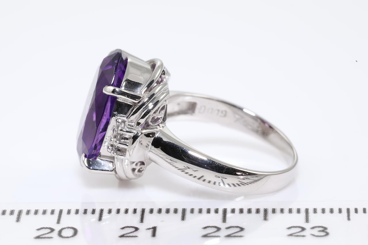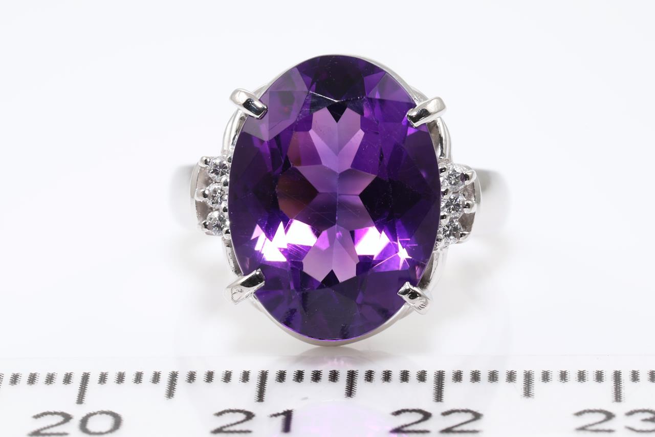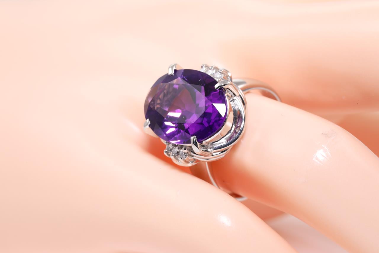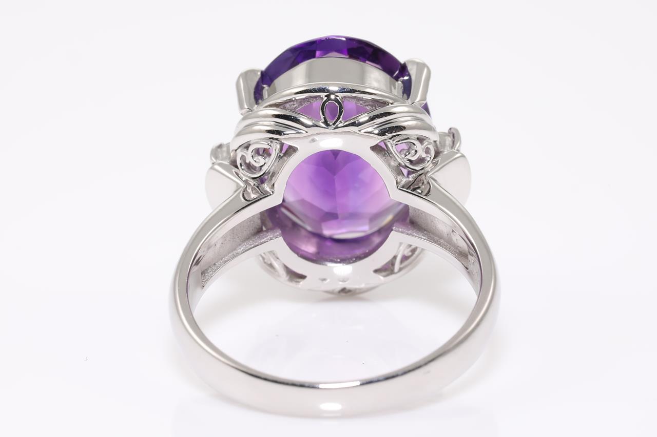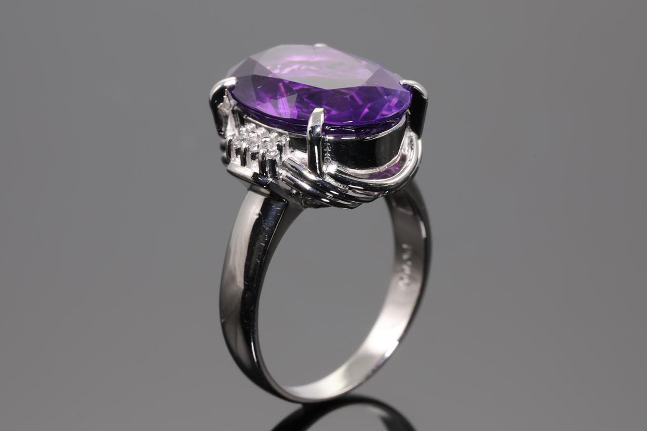 Amethyst and Diamond Ring with centre oval shape Amethyst of 7.42cts and Diamonds totalling 0.09cts. Platinum. Ring size: O. Weight: 11.1g. (Pre-owned)