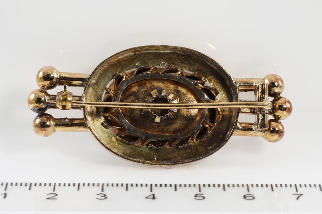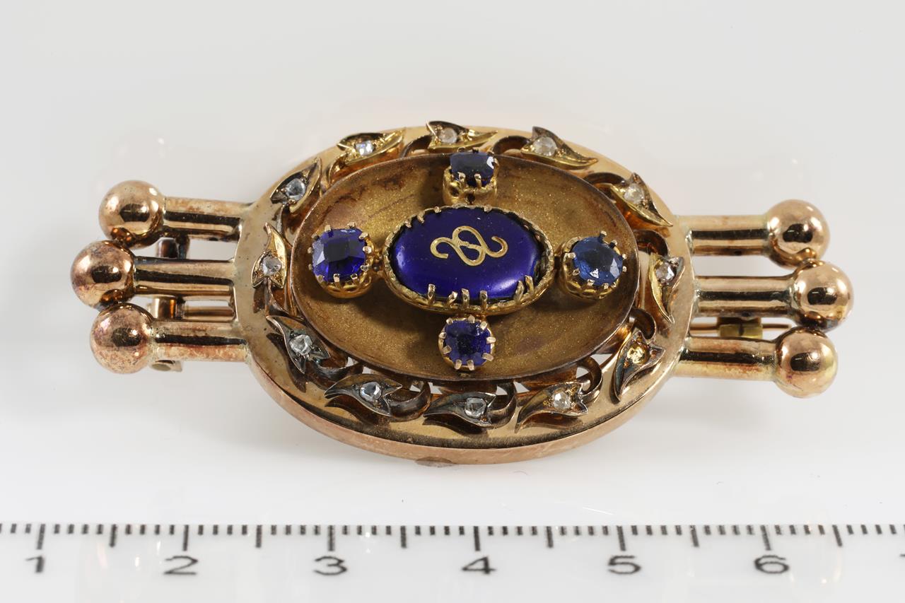 Antique brooch with Lapis Lazuli, old cut Diamonds & 4 blue stones. 14ct rose gold. Weight: 16.2gm. (Pre-owned)