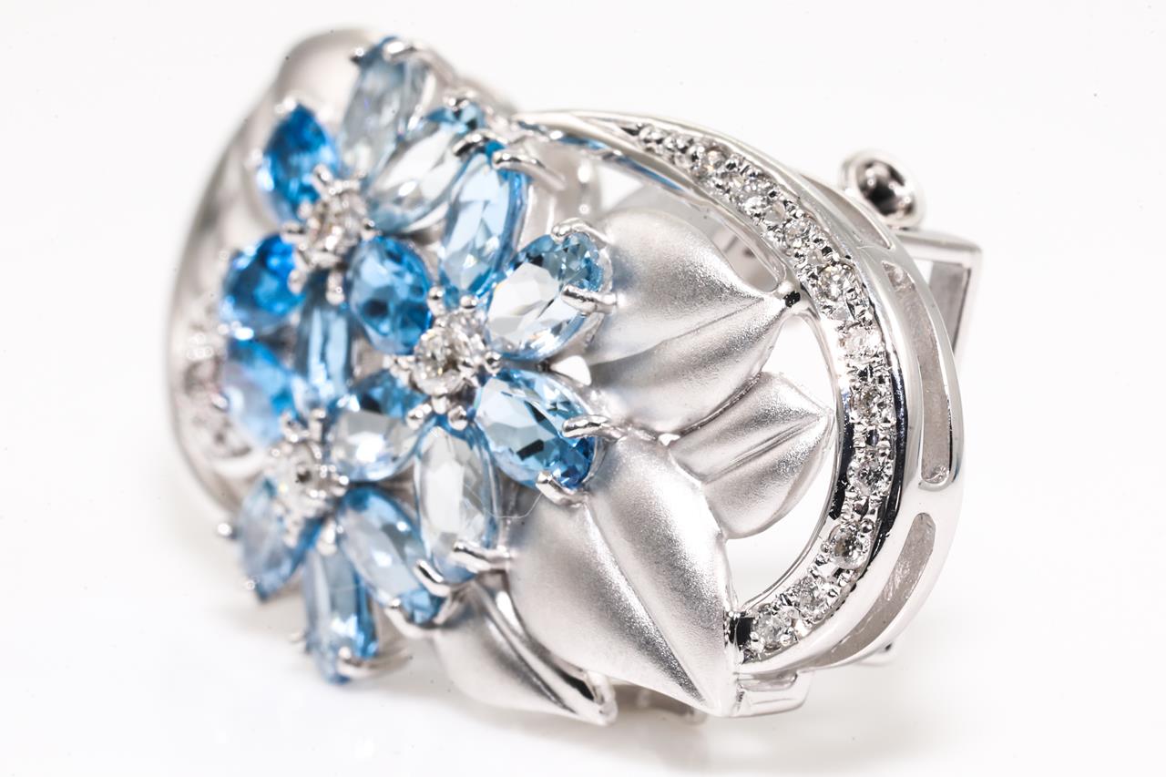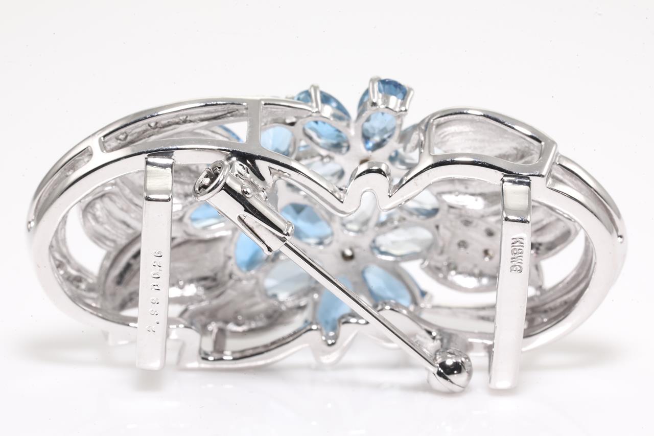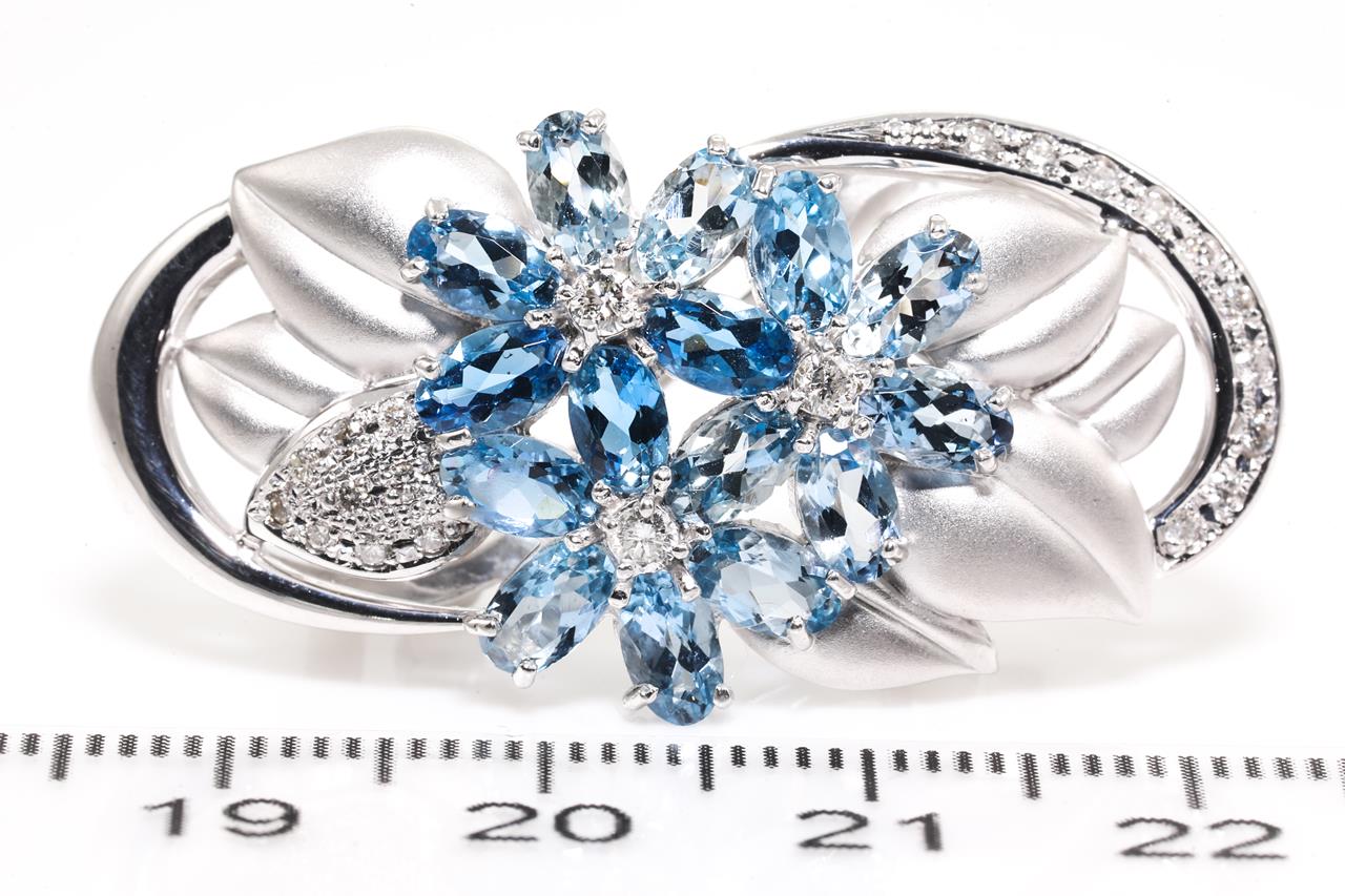 Aquamarine and Diamond Brooch/Pendant with Aquamarine of 2.99ct and Diamonds totalling 0.26cts. 18ct white gold. Weight: 10.7g. (Pre-owned)