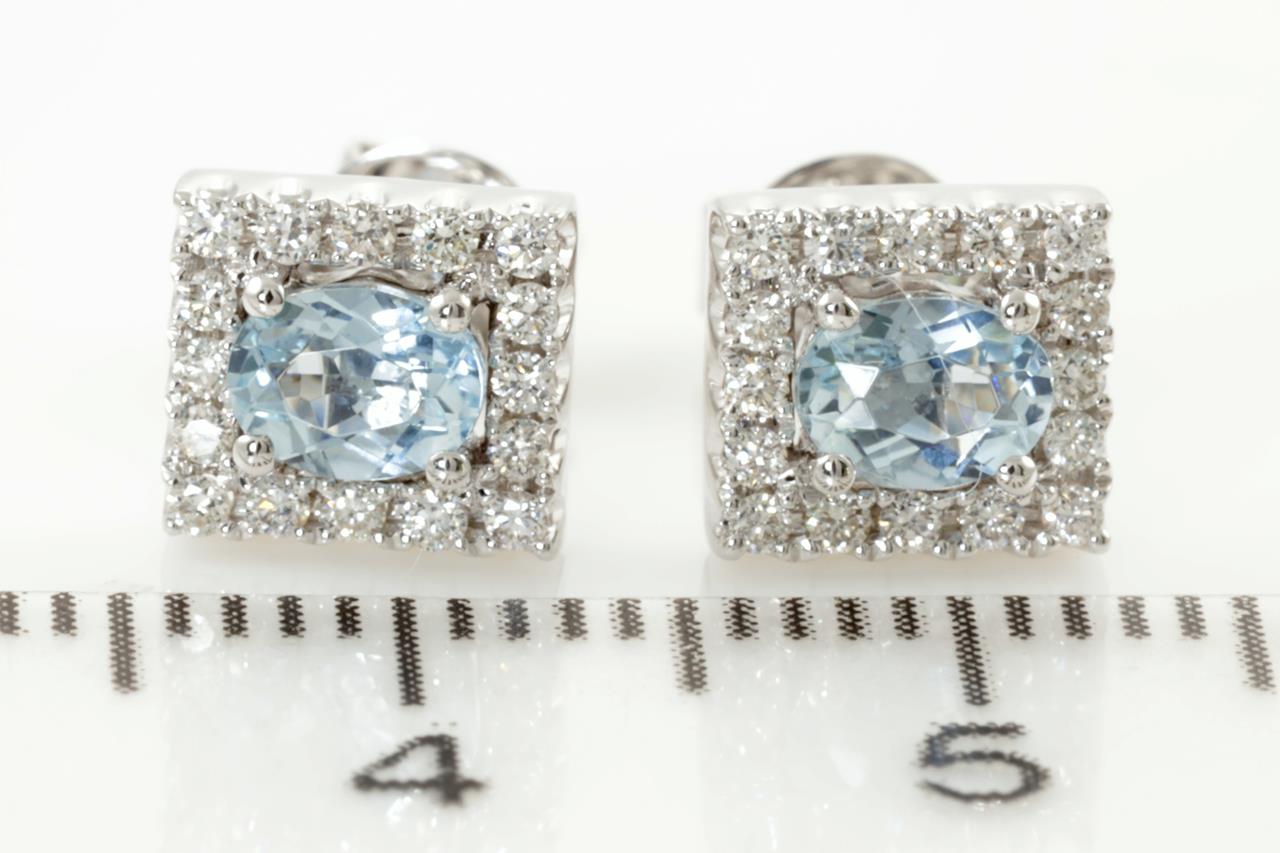Aquamarine and Diamond earrings with oval Aquamarine totalling 0.50cts and Diamonds totalling 0.20cts. 14ct white gold. Weight: 2.2g. (New)