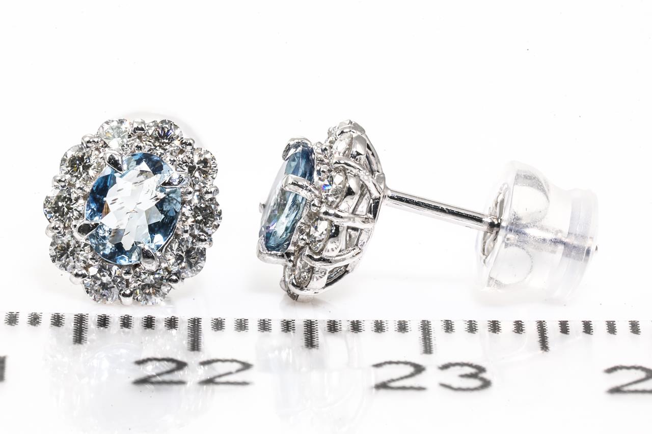 Aquamarine and Diamond earrings with oval shape Aquamarines totalling 0.51cts and Diamonds totalling 0.46cts (Estimated grading: G SI). Platinum and silicon backs. Weight: 1.95g (Pre-owned)