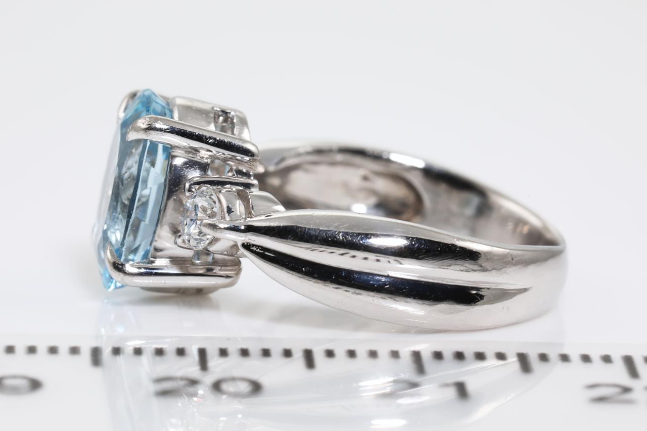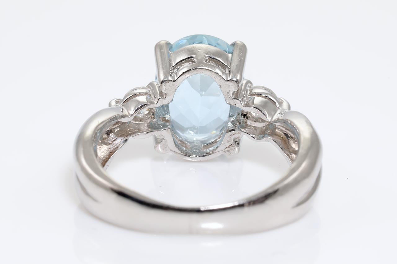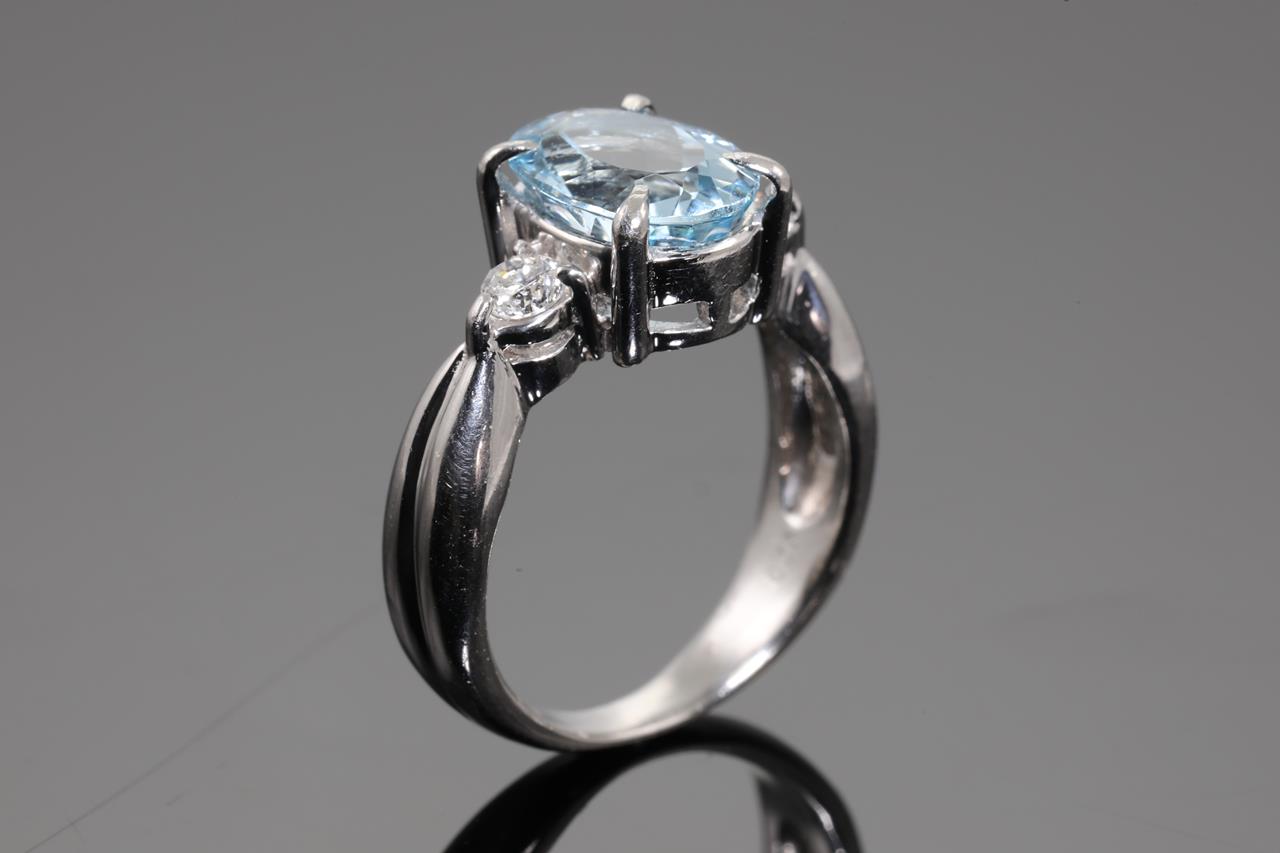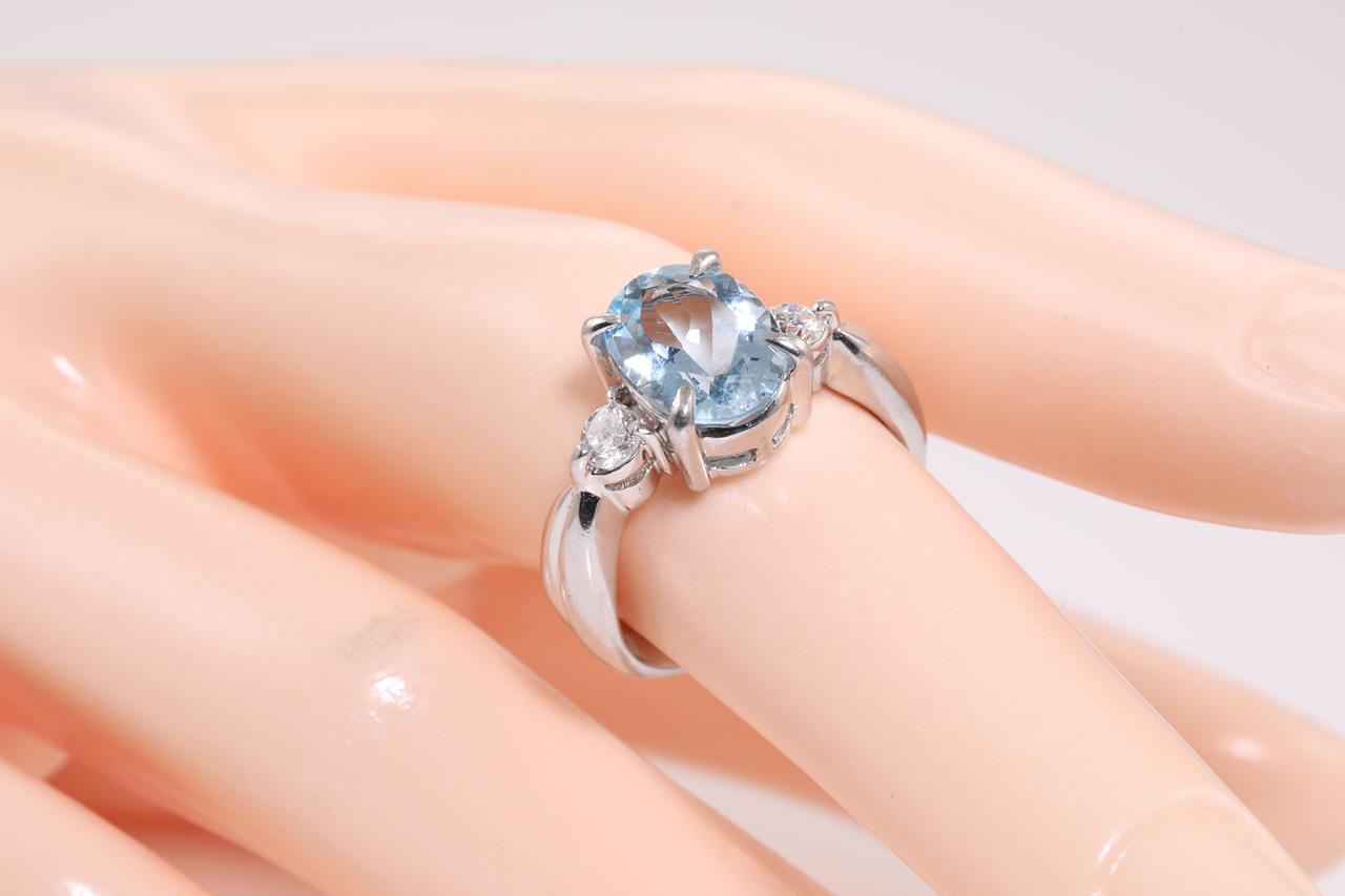 Aquamarine and Diamond Ring with oval shape Aquamarine of 2.16ct and 2 Diamonds totalling 0.23ct. 18ct white gold. Ring size L1/2 - ring resizing is not recommended. Weight: 5.7g (Pre-owned)