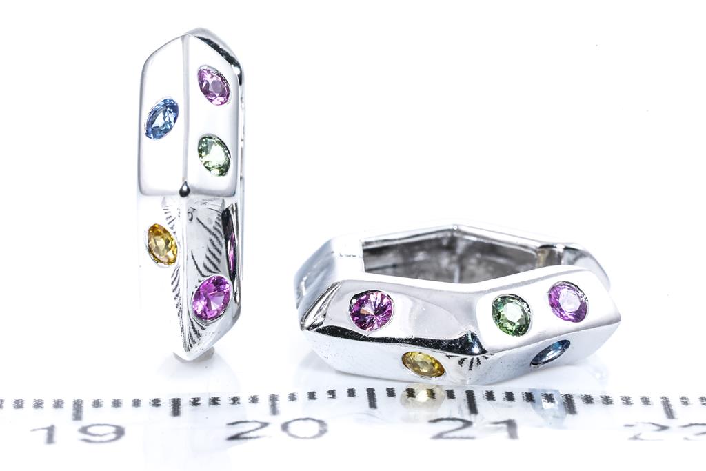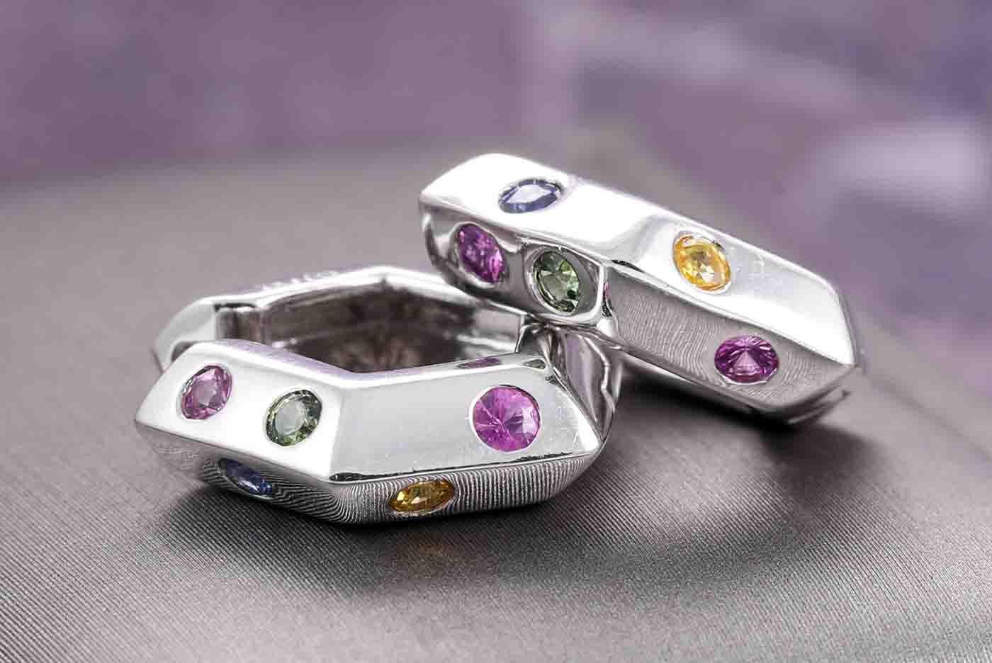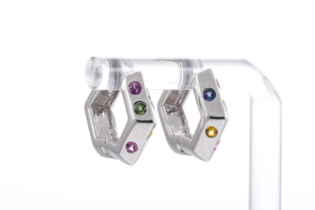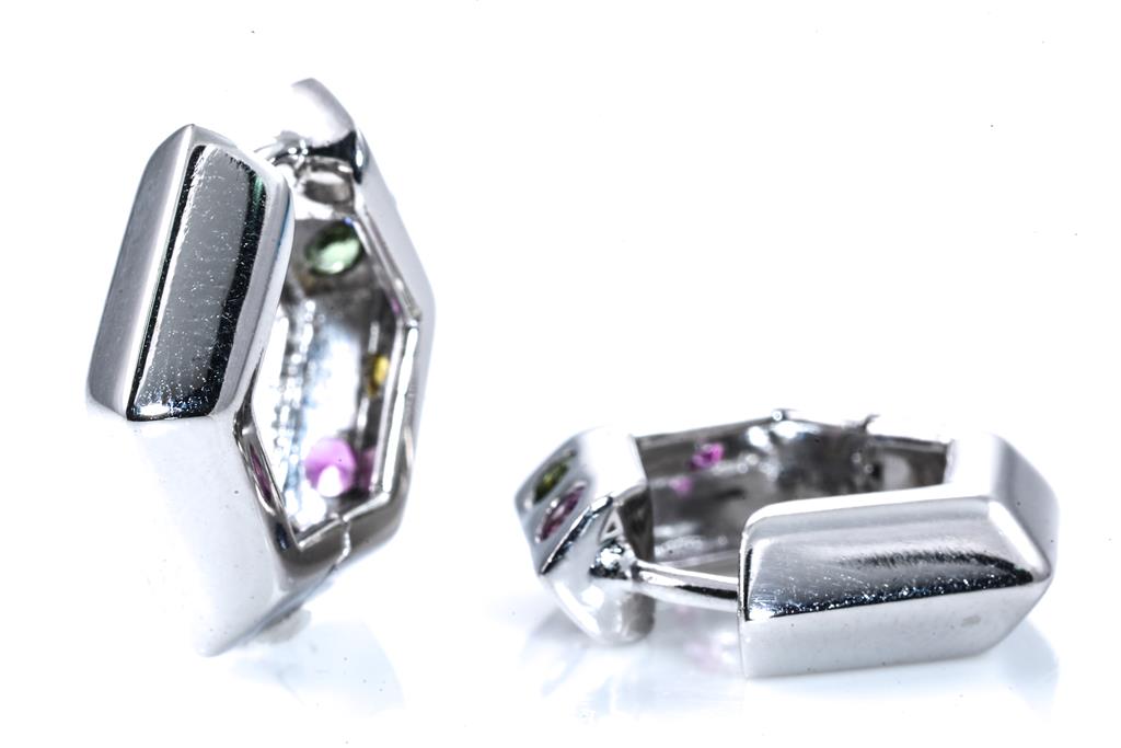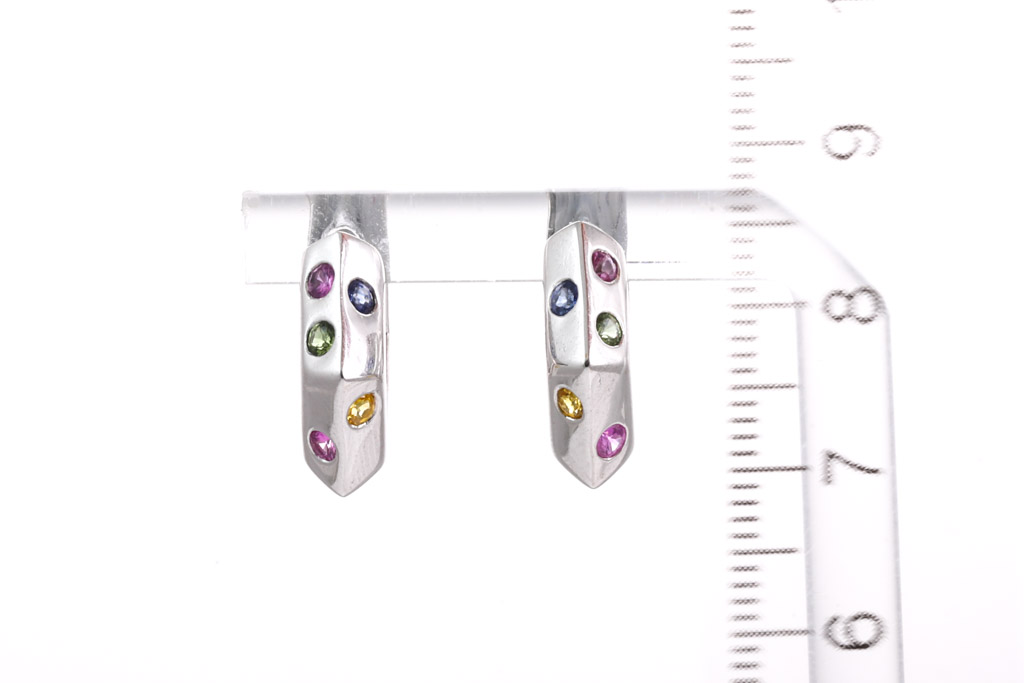 Arezzo Sapphire earrings with round multicolour Sapphires totalling 0.75cts. 18ct white gold. Weight: 9.1g. (Pre-owned)