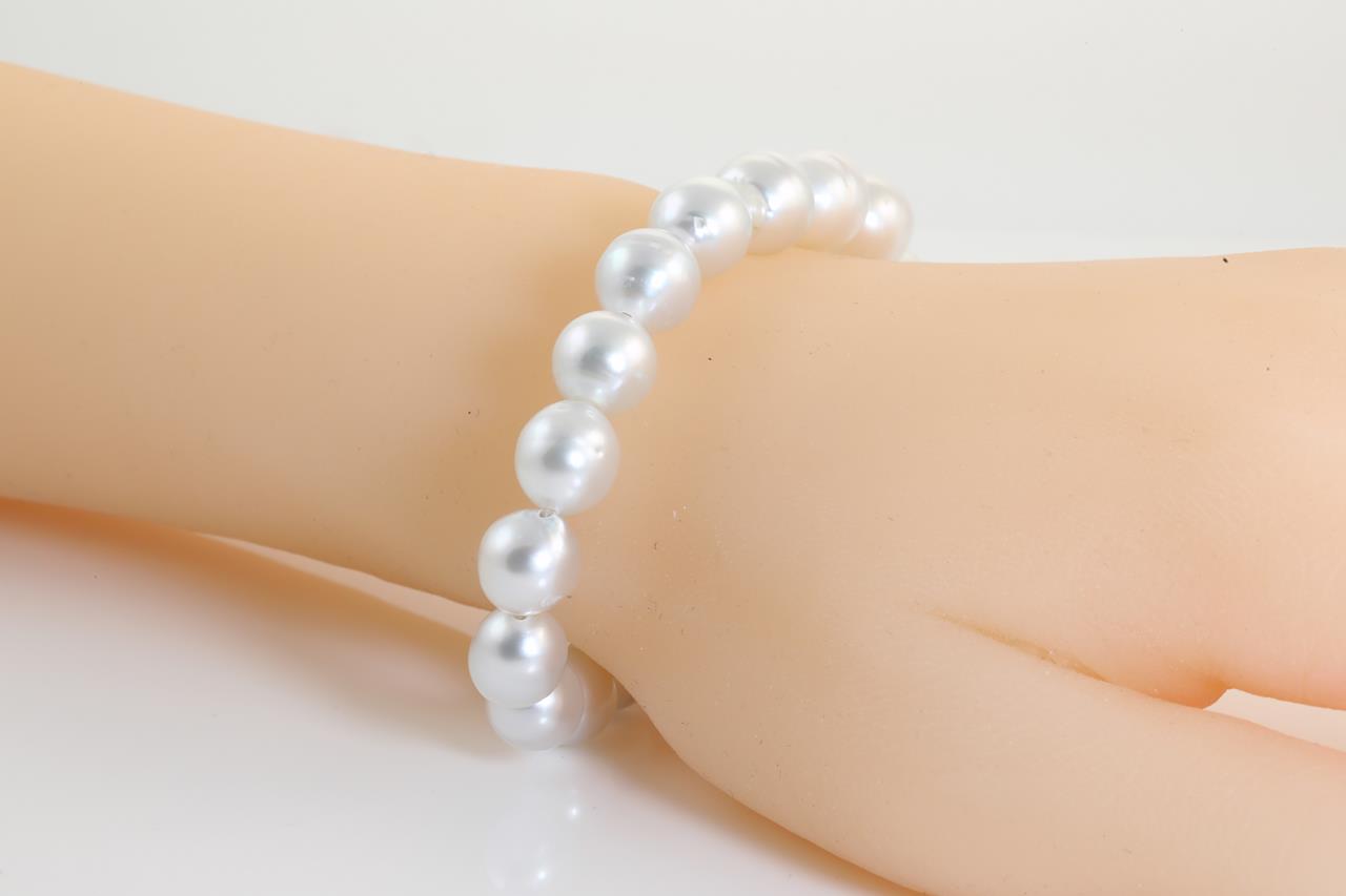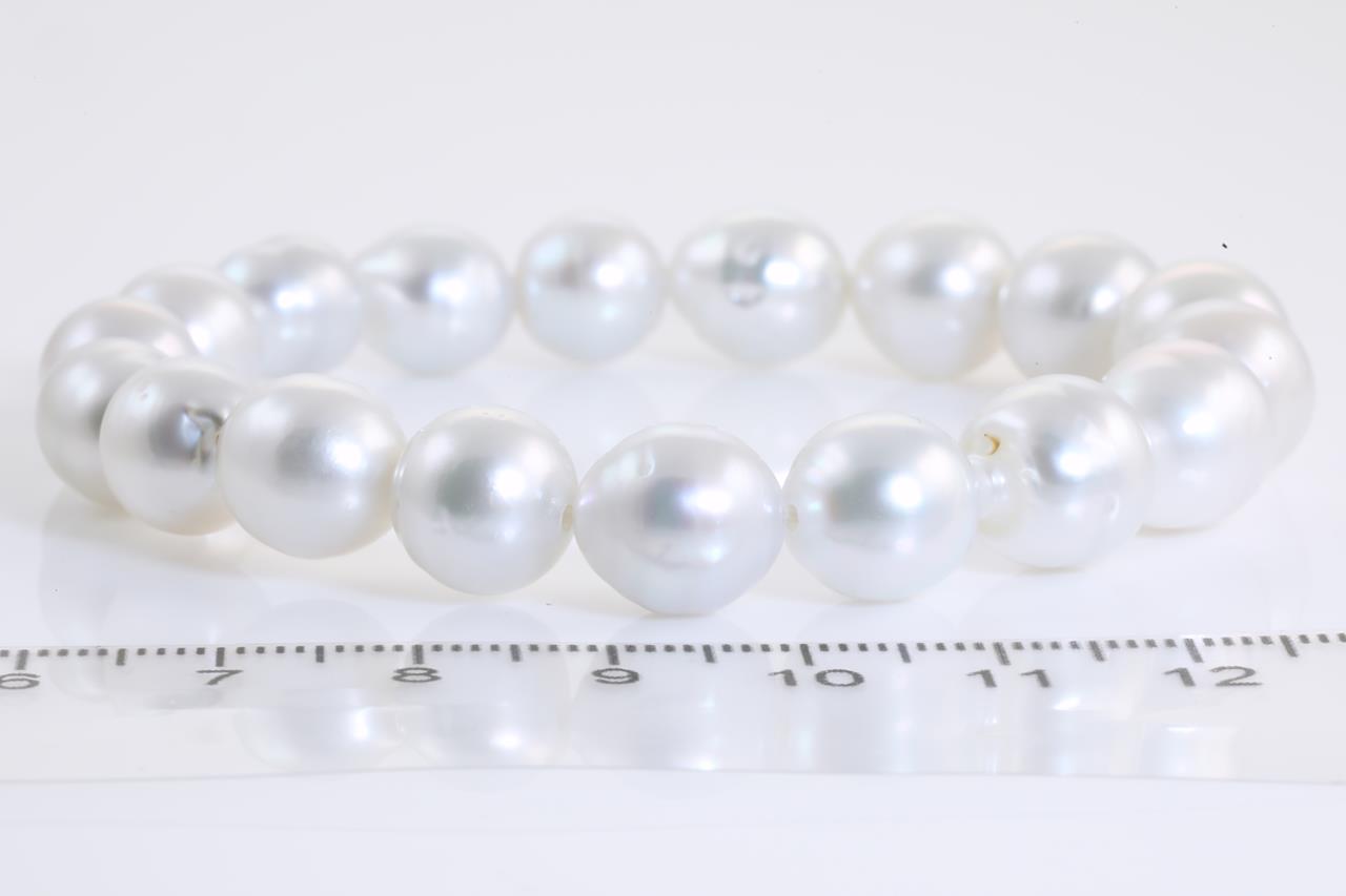 Pearl elasticated cord stretch bracelet with 17 Australian South Sea Pearls of 9.3mm - 10.7mm. Length: 17cm. Weight: 26.8g. (New)