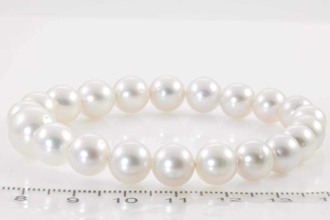 Pearl elasticated cord stretch bracelet with 21 graduated near round silver Australian South Sea Pearls of 8.0mm-10.4mm. Weight: 19.6g. (New)