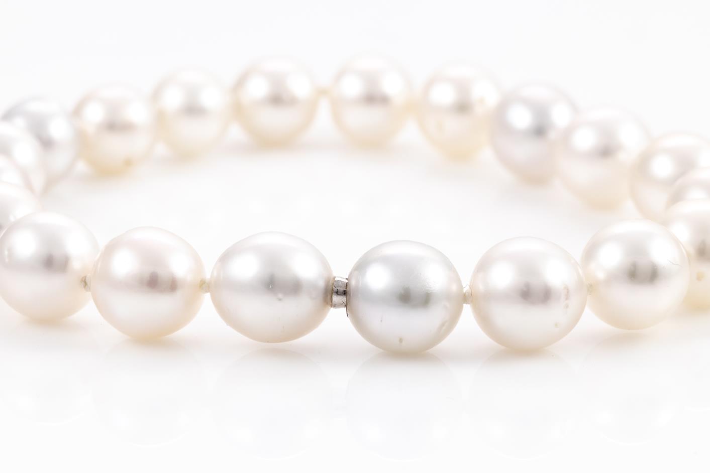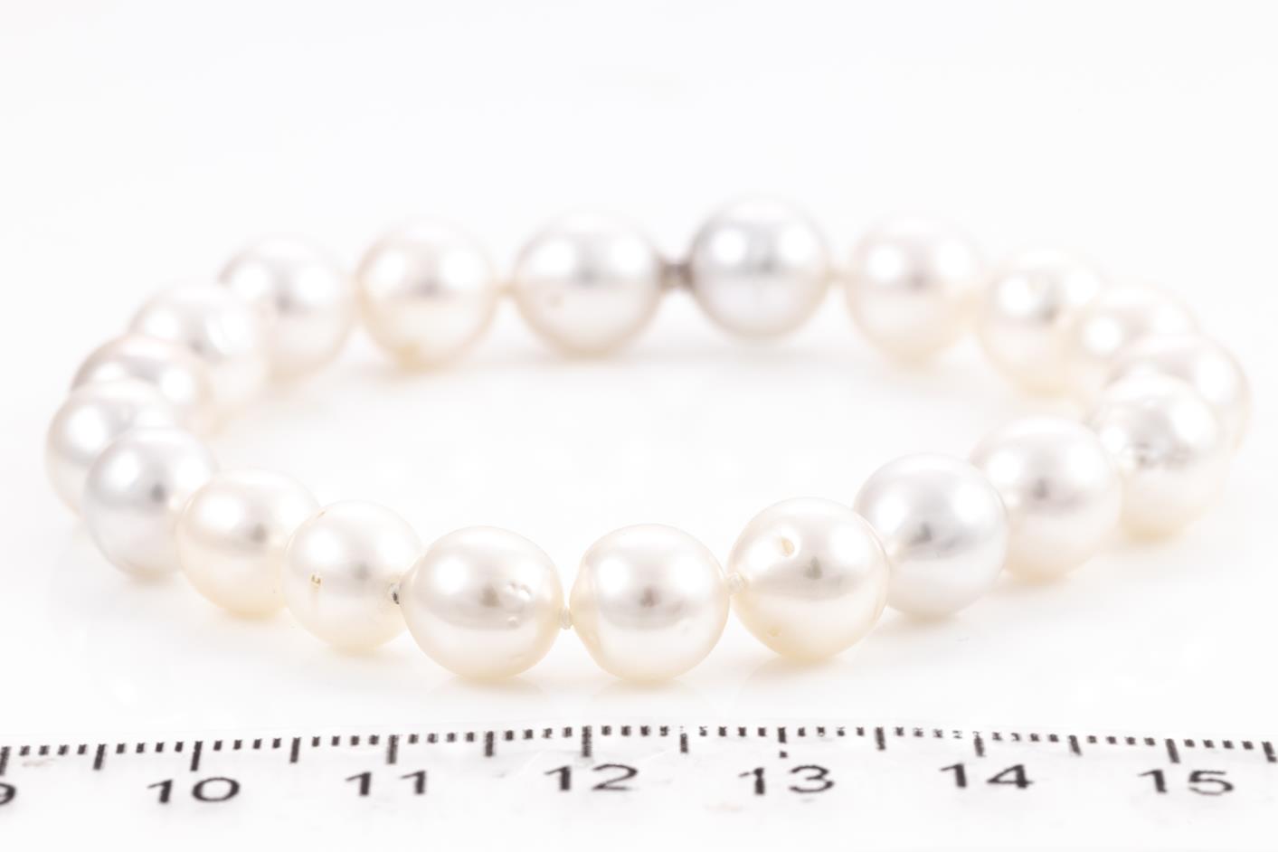 Pearl bracelet with 20 Australian South Sea short oval Pearls of 8mm - 9mm. 18ct white gold invisible clasp. Length: 19.5cm. Weight: 20.7g. (New)