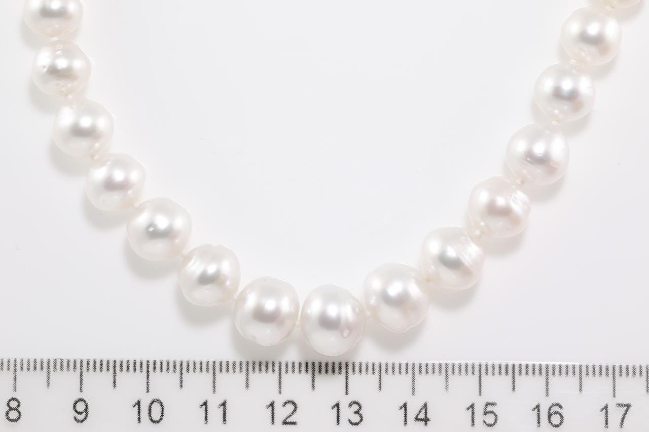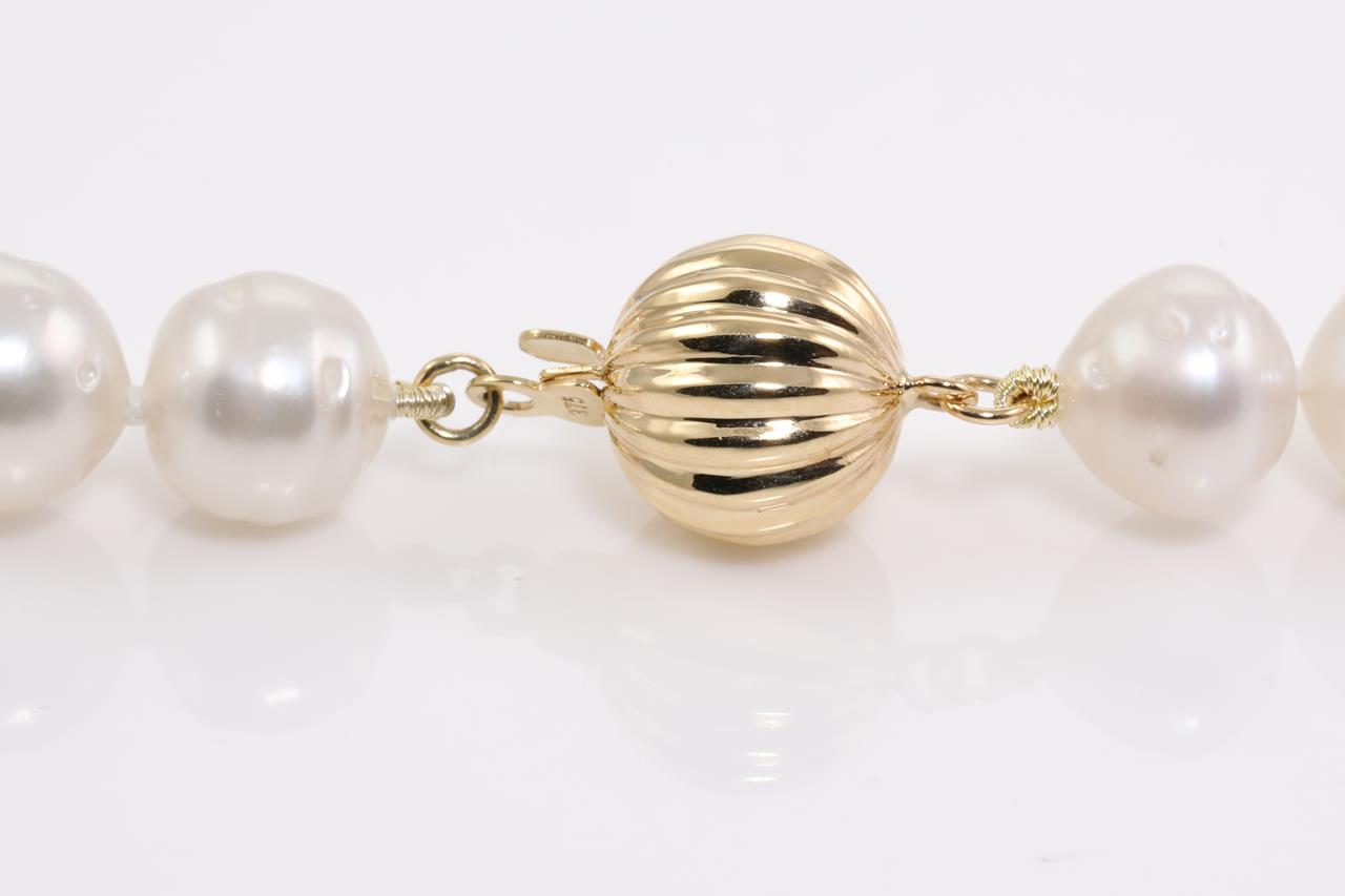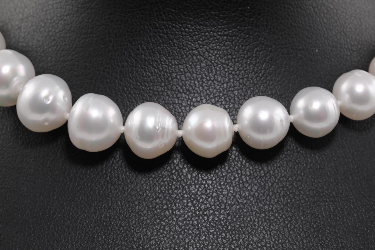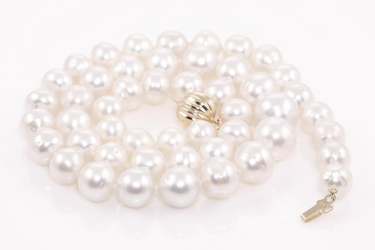 Pearl necklace with 49 Australian South Sea pearls of 8.0mm-10.9mm. With 9ct yellow gold clasp. Length: 46cm. Weight: 47g. (New)