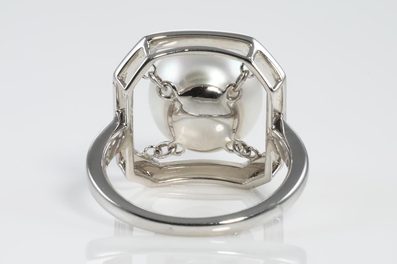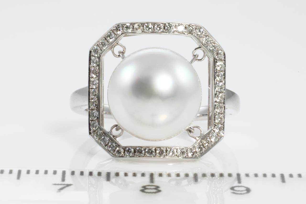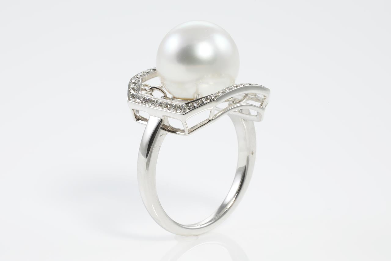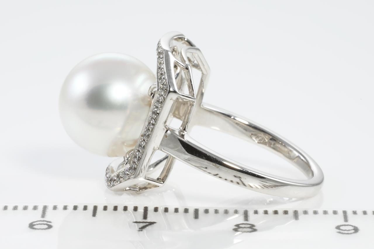 Autore Pearl and Diamond ring with South Sea Pearl of 10mm and Diamonds totalling 0.30cts (Estimated grading: H SI1). 18ct white gold. Ring size M. Weight: 6.1g (New)