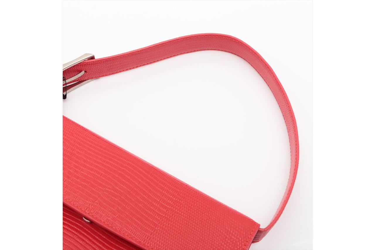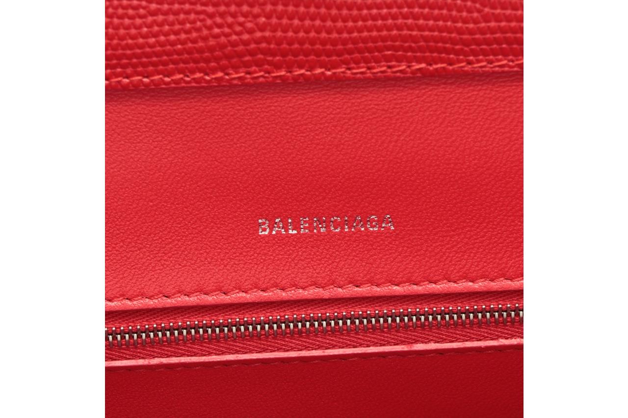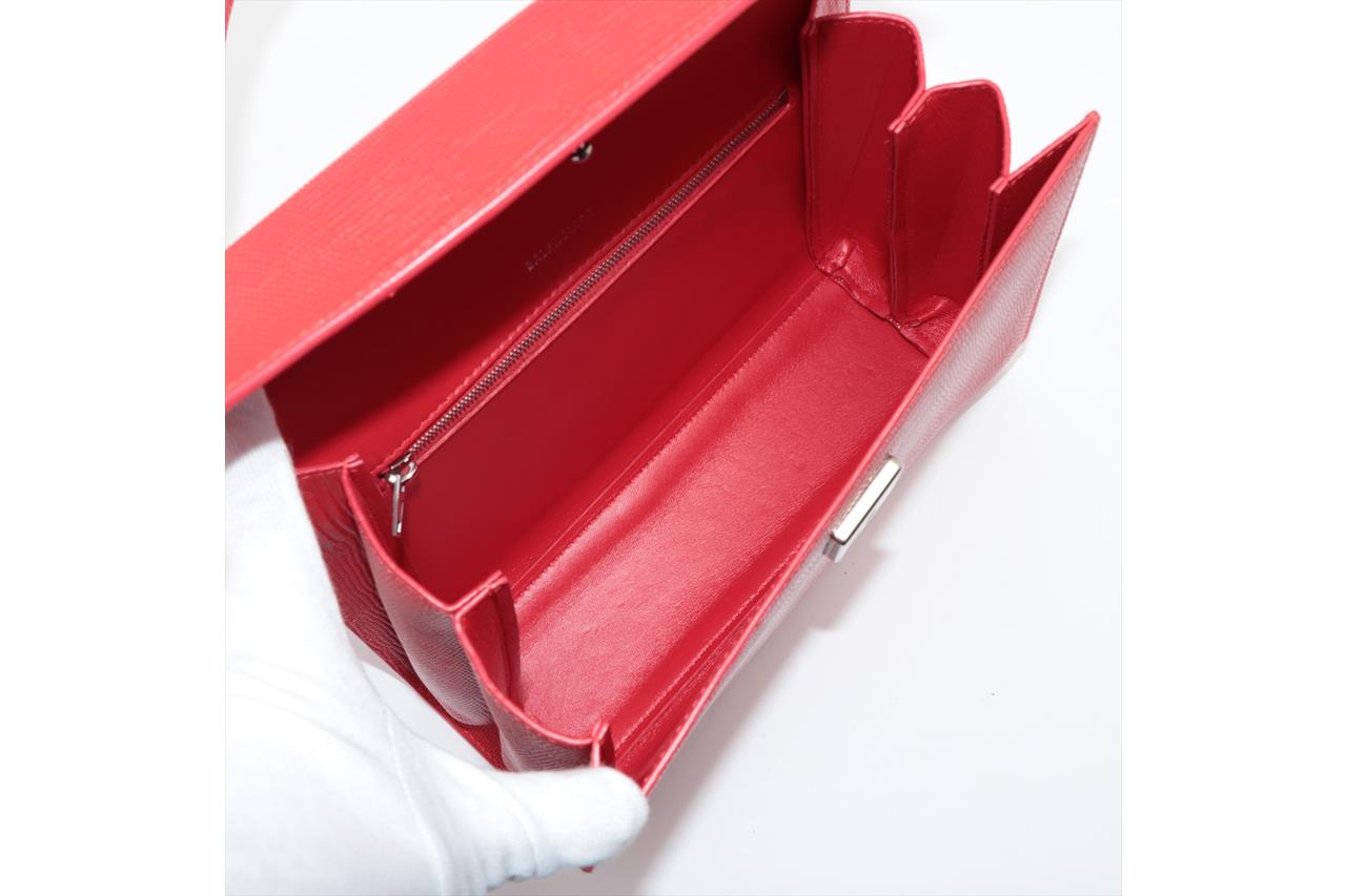 Balenciaga Ghost red crocodile embossed calfskin bag. Silver-tone hardware. Approximate dimensions: 25.5cm (L) x 21cm (H) x 9.5cm (D). 28cm adjustable leather strap with belt buckle and a front flap closure. Made in Italy. With Balenciaga dust bag. With Entrupy Certificate of Authenticity. (As New)