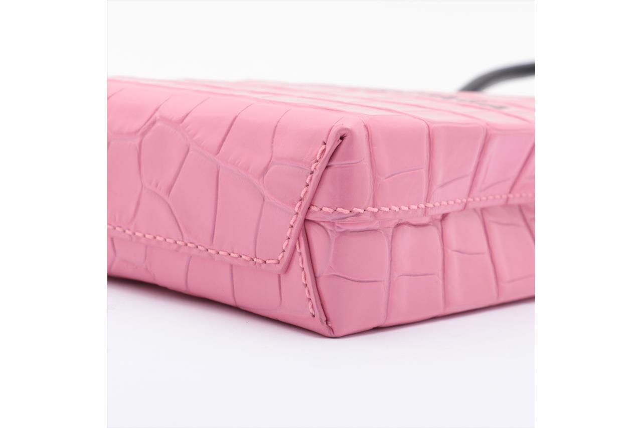 Balenciaga Pink Croc Shopping Phone Holder Bag