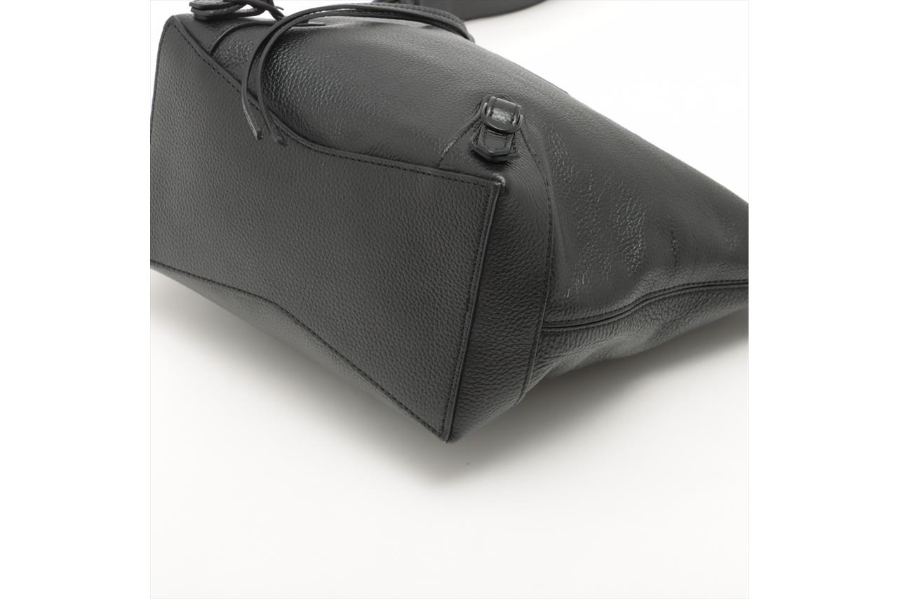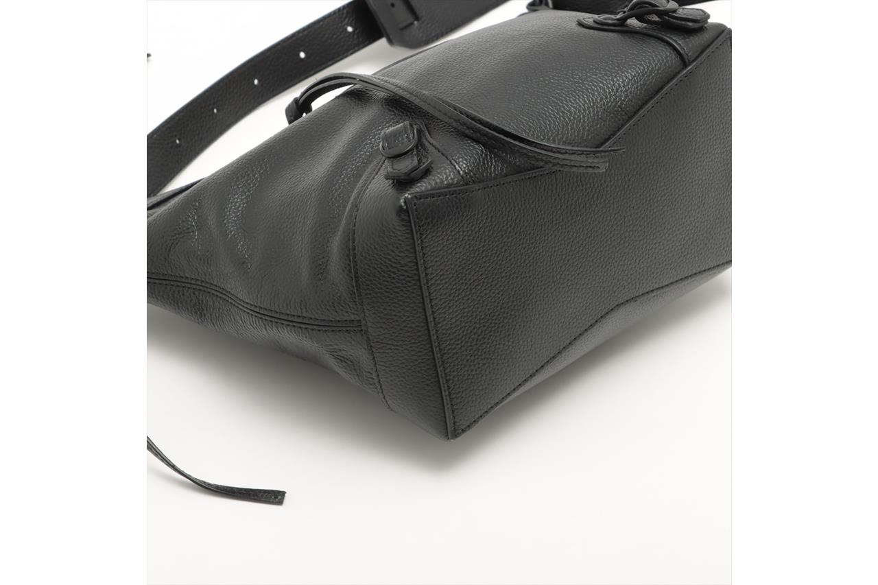 Balenciaga XS Neo Classics Hobo bag in black leather. Featuring the classic stud and buckle detailing, tassel-adorned zippers and zipper pockets on front. Black-tone hardware, textile lining interior with single zipped pocket, top zip closure. Approximate dimensions: 18-29cm(L) x 20cm(H) x 11cm(D), 43.5cm adjustable strap drop height. With Entrupy Certificate of Authenticity. (Pre-owned)