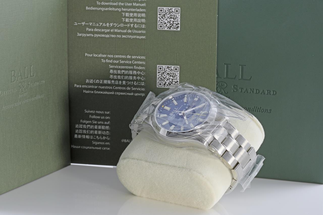 Ball Engineer III Endurance 1917 Classic limited edition stainless steel automatic mens watch. Blue dial, day & date, case diameter: 40mm, Swiss made. Ref# NM2182C-S4C-BE, limited edition of 1000. With Ball stainless steel bracelet and clasp. With Ball QR code linking to user manual, International warranty card, Chronometer certificate and limited edition certificate inside Ball box. 2 year manufacturer warranty. (New, in original wrapping)