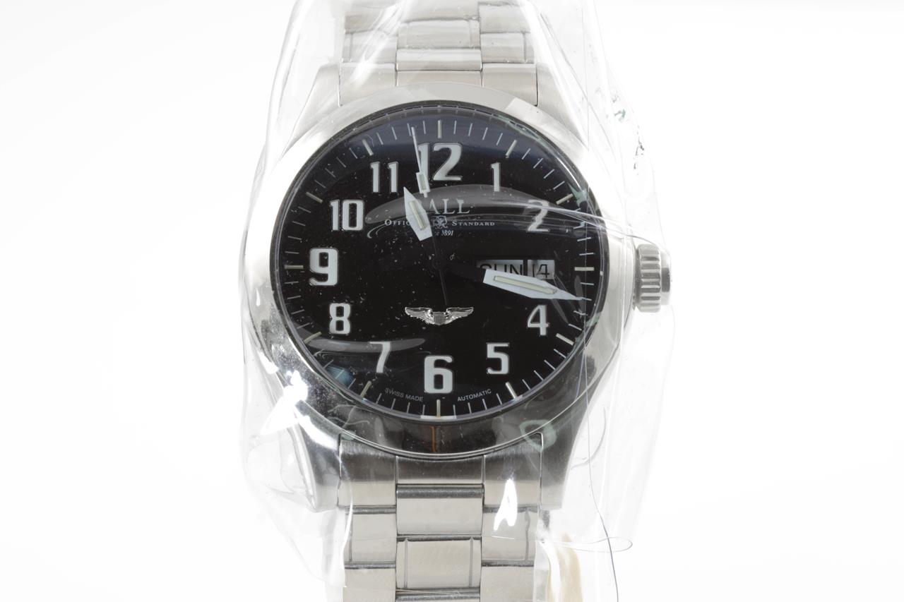 BALL Engineer III stainless steel automatic mens watch. Black dial, day & date, case diameter: 40mm, Swiss made. Ref# NM2182C-S3J-BK. With Ball stainless steel bracelet and clasp. With Ball QR code linking to user manual, International warranty card and Ball box. 2 year manufacturer warranty. (New, in original wrapping)