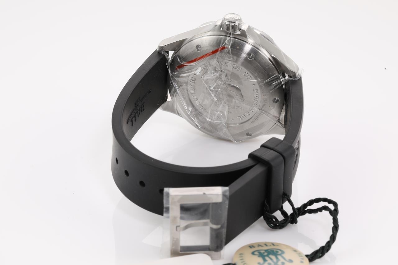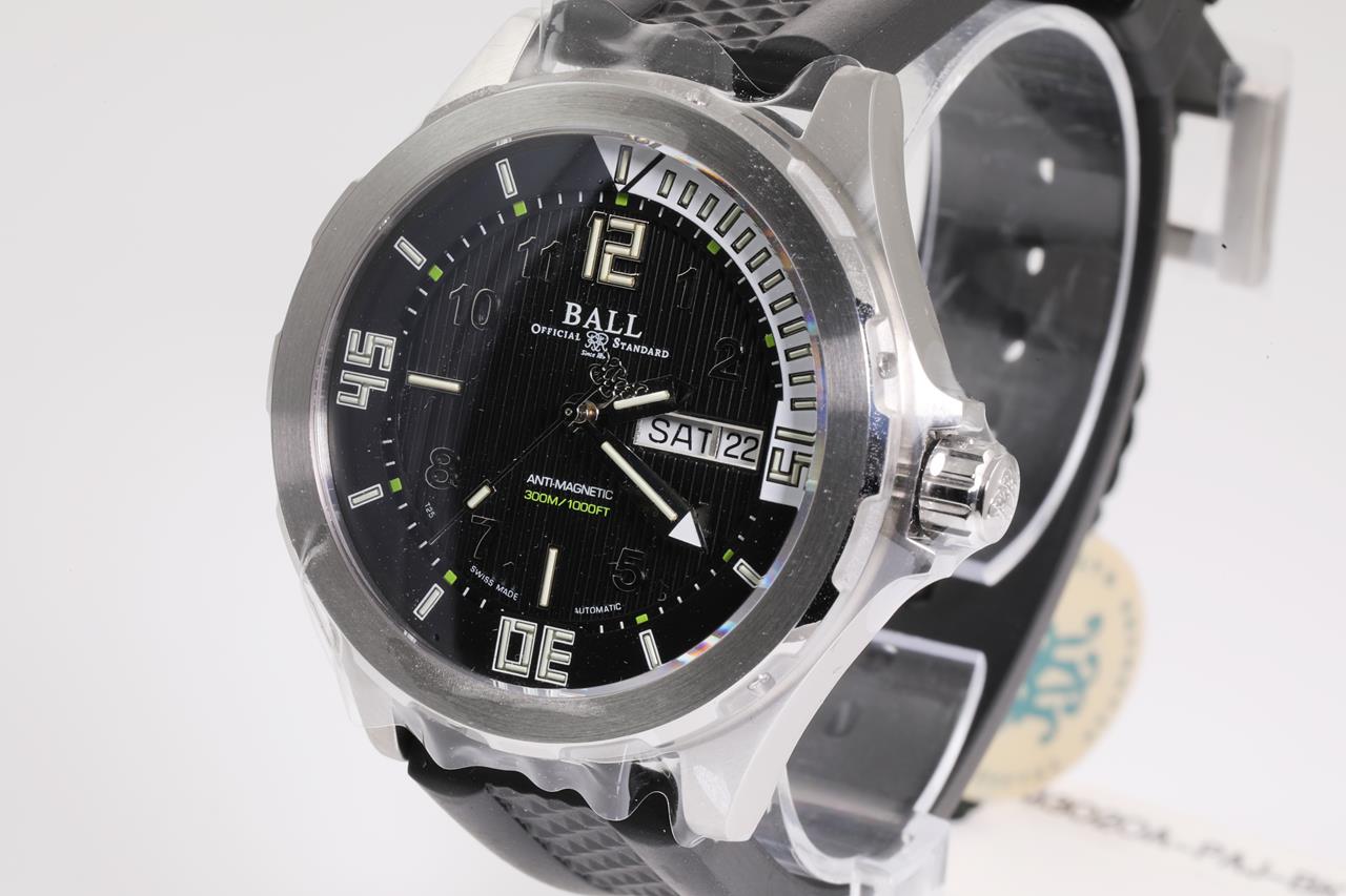 Ball Engineer Master II Diver stainless steel automatic mens watch. Black dial, day & date, case diameter: 42cm, length: 23cm, Swiss made. Ref# DM3020A-PAJ-BK. With Ball black rubber strap and clasp. With Ball Premium International warranty certificate card (not stamped), Ball QR code linking to user manual and Ball box. 2 year manufacturer warranty. (New, in original wrapping)