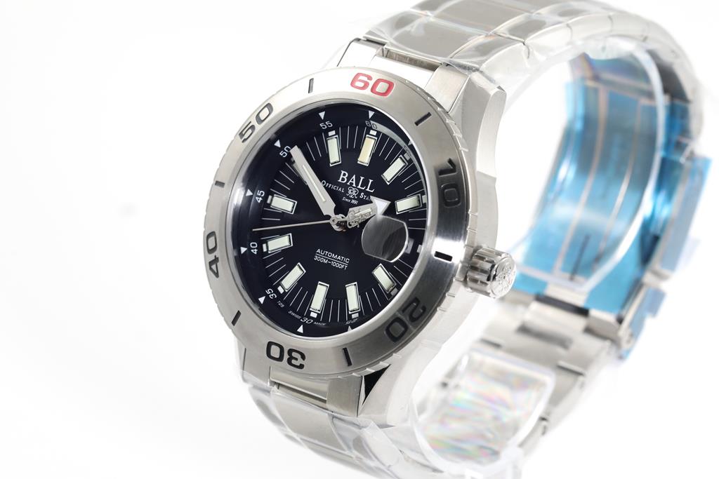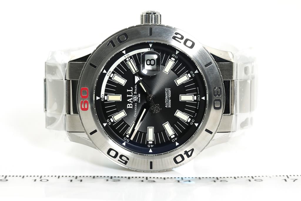 BALL Fireman NECC stainless steel automatic mens watch. Black dial, date, case diameter: 40.5mm, wrist size: 20cm, Swiss made. Ref#DM3090A-S3J-BK. With BALL QR code linking to user manual, Premium International Warranty Certificate Card and BALL box. 2-year manufacturer warranty. (New, in original wrapping)