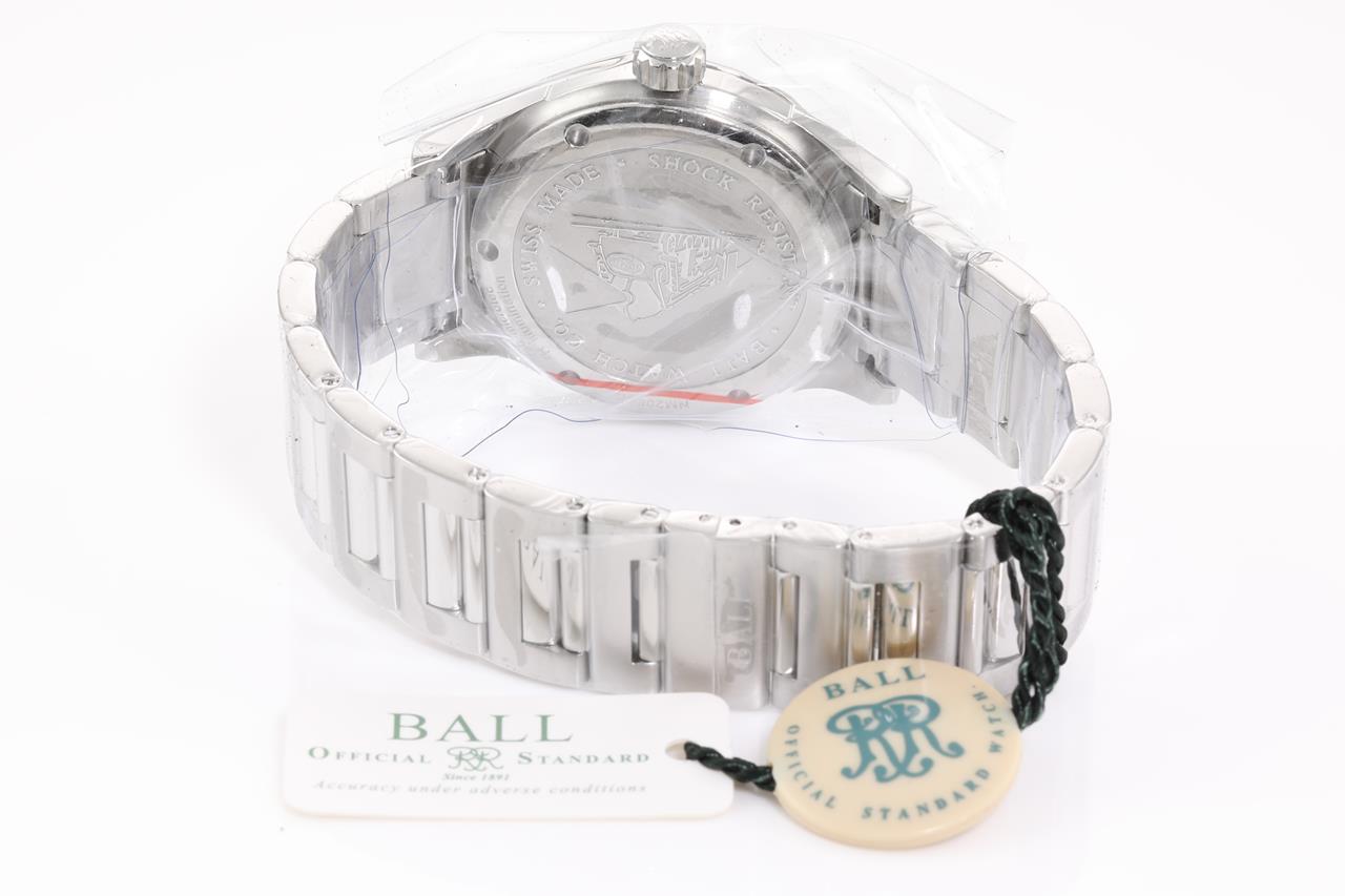Ball Fireman Racer stainless steel automatic mens watch. Black dial, date, case diameter: 40mm, wrist size: 18.5cm, Swiss made. Ref# NM2088C-S2J-BKRD. With Ball stainless steel bracelet and clasp. With Ball Premium International warranty certificate card (not stamped), Ball QR code linking to user manual and Ball box. 2 year manufacturer warranty. (New, in original wrapping) (New)
