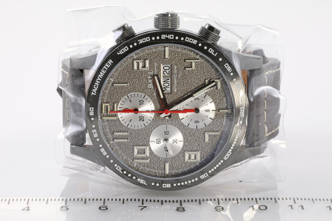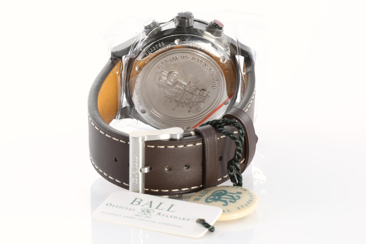 BALL Limited Edition Fireman Storm Chaser black DLC coated steel automatic mens watch. Grey chronograph dial, day & date, case diameter: 43mm, Swiss made. Ref# CM2192C-L4A-GY, limited edition of 1999. With Ball brown leather strap and clasp. With Ball QR code linking to user manual, International warranty card and limited edition certificate inside Ball box. 2 year manufacturer warranty. (New, in original wrapping)