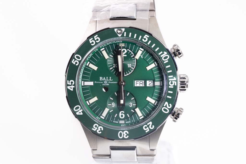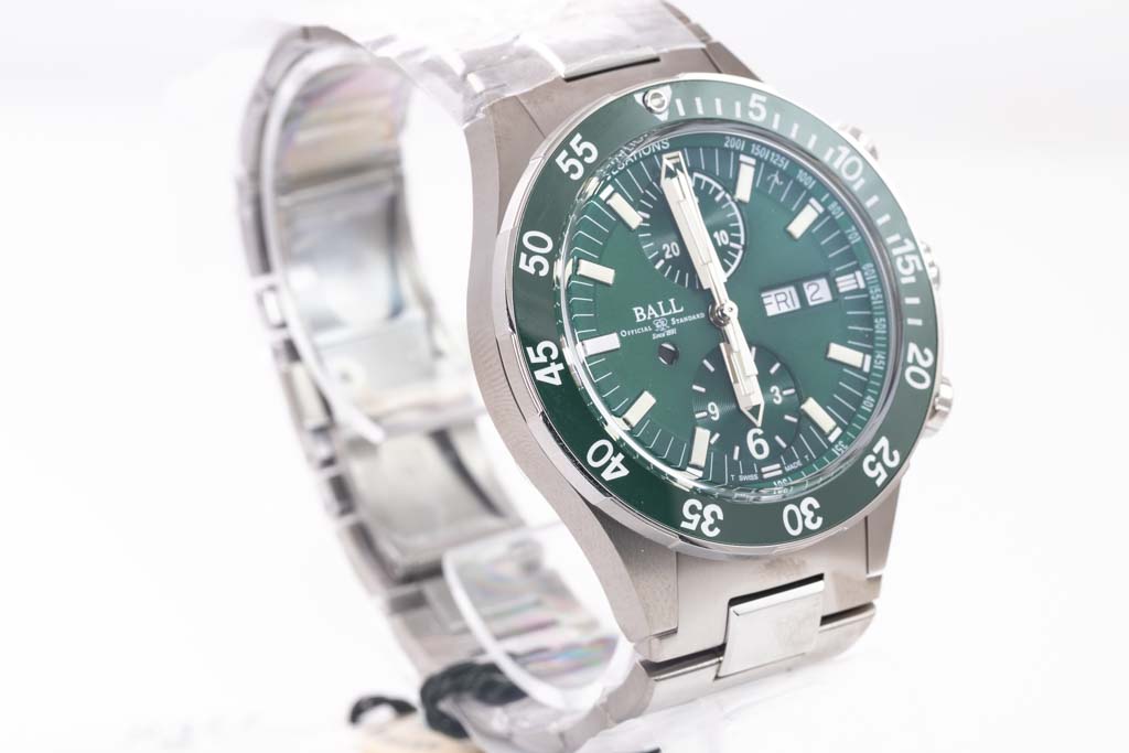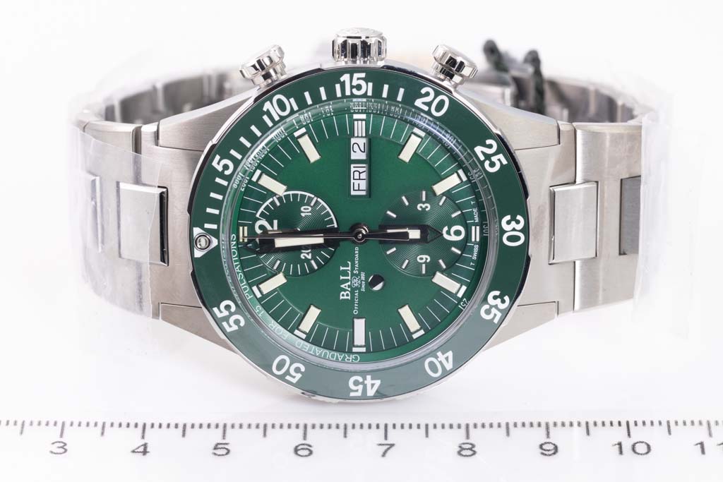 Ball Roadmaster Rescue stainless steel and titanium automatic watch. Green dial, date, case diameter: 42mm, wrist size: 19.5cm, Swiss made. Ref# DC3030C-S2-GR. With Ball stainless steel and titanium bracelet and clasp. With Ball Limited Edition Certificate card, Ball International Warranty Certificate card and Ball box. 12 month Warranty. (As new, Note: case and bracelet in original wrapping)