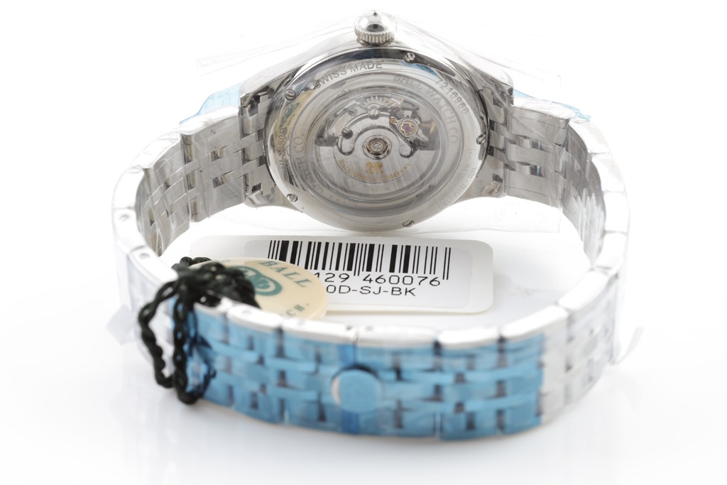 BALL Trainmaster Eternity stainless steel automatic ladies watch. Black dial, date, case diameter: 31mm, wrist size: 17cm, Swiss made. Ref# NL2080D-SJ-BK. With BALL stainless steel bracelet and clasp. With BALL QR code linking to user manual, Premium International Warranty Certificate Card and BALL box. 2-year manufacturer warranty. (New, in original wrapping)