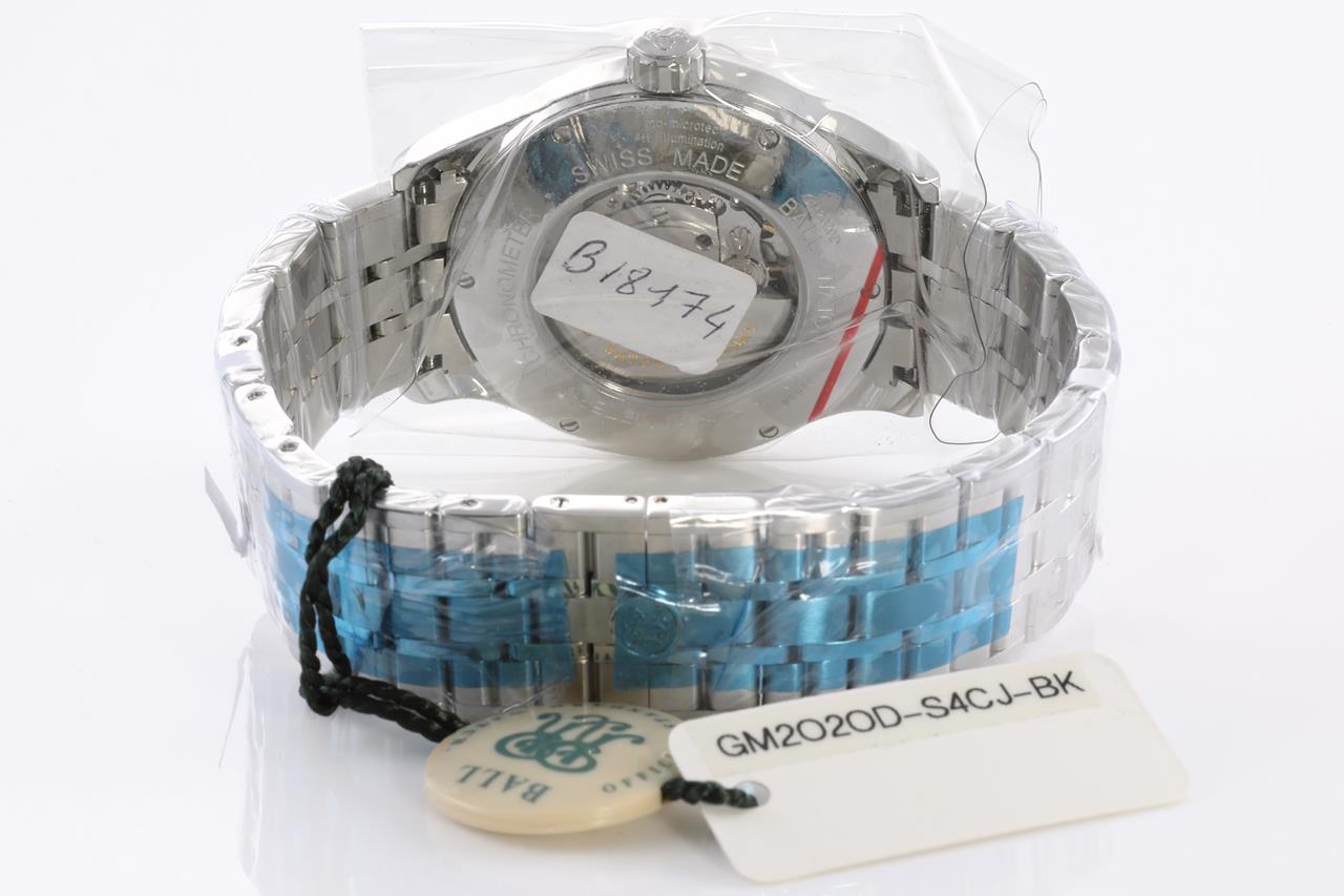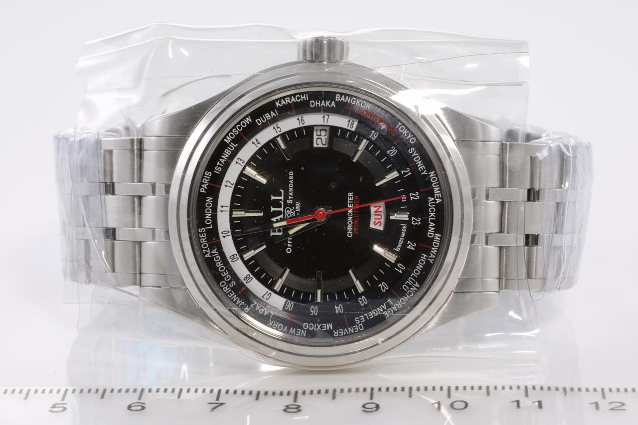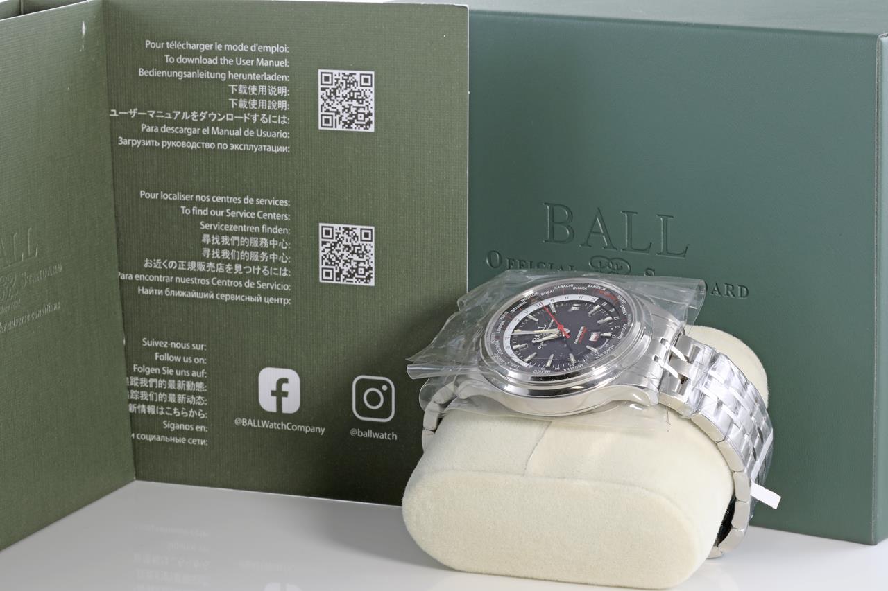 BALL Trainmaster Worldtime stainless steel automatic mens watch. Black dial, date & date, case diameter: 41mm, Swiss made. Ref# GM2020D-S4CJ-BK. With Ball stainless steel bracelet and clasp. With Ball QR code linking to user manual, International warranty card and Chronometer certificate card inside Ball box. 2 year manufacturer warranty. (New, in original wrapping)