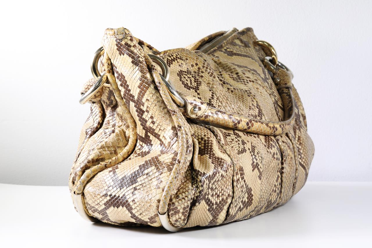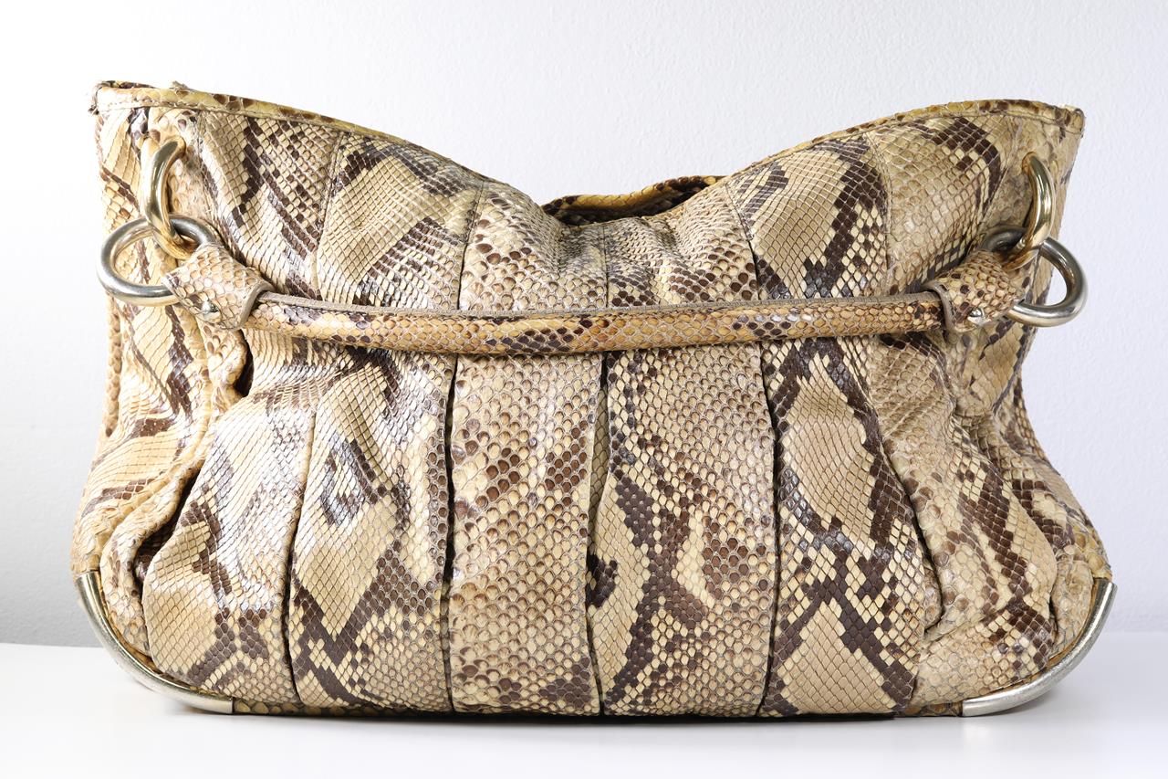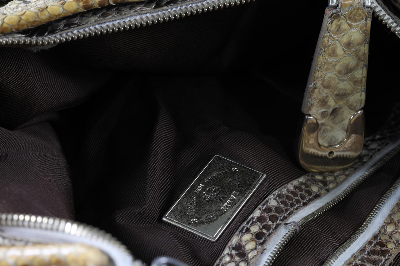 Bally Python Bag Shoulder Bag. Featuring two top handles, magnetic button closure, a spacious fabric interior with one zip and one small pocket. Approximate dimentions: 43cm (L) x 32cm (H) x 15cm (D). (Pre-owned)