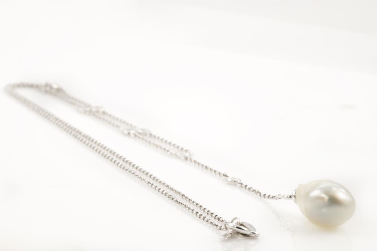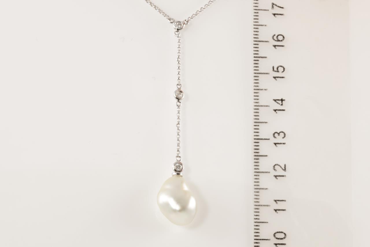 Pearl and Diamond necklace with a Baroque South Sea Pearl with 9 Diamonds totalling 0.27cts. 18ct white gold. Length 41cm chain. Weight: 4.9g (Pre-owned)