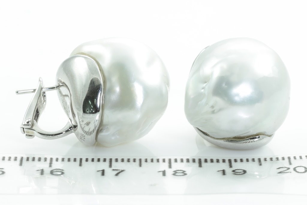 Pearl Clip-on Earrings with white Baroque South Sea Pearls of 17.8-18.0mm. 18ct white gold. Weight 24.5g. (As New)