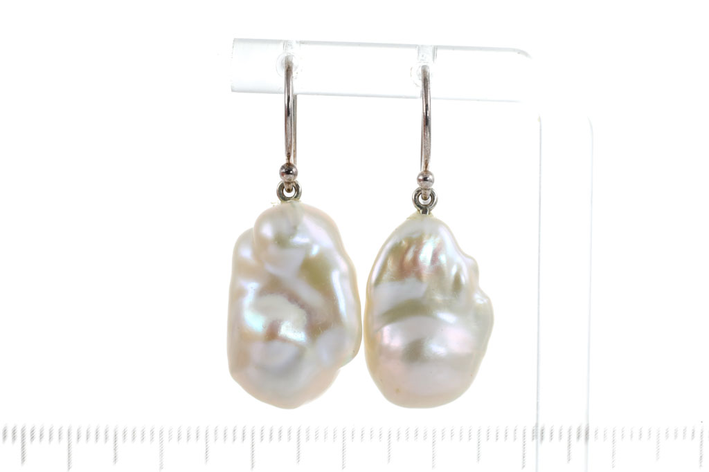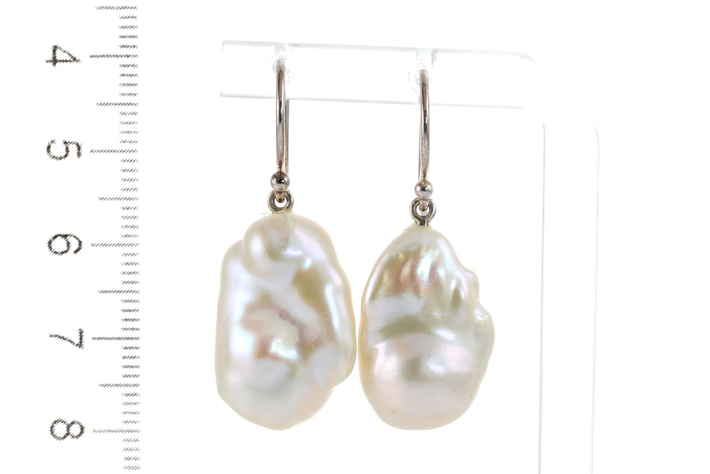 Pearl shepherds hook earrings with baroque cultured Pearls of 22.3x14.5x12mm, 23x15.9x13.5mm. Sterling silver-925. Weight: 10.7g (Pre-owned)